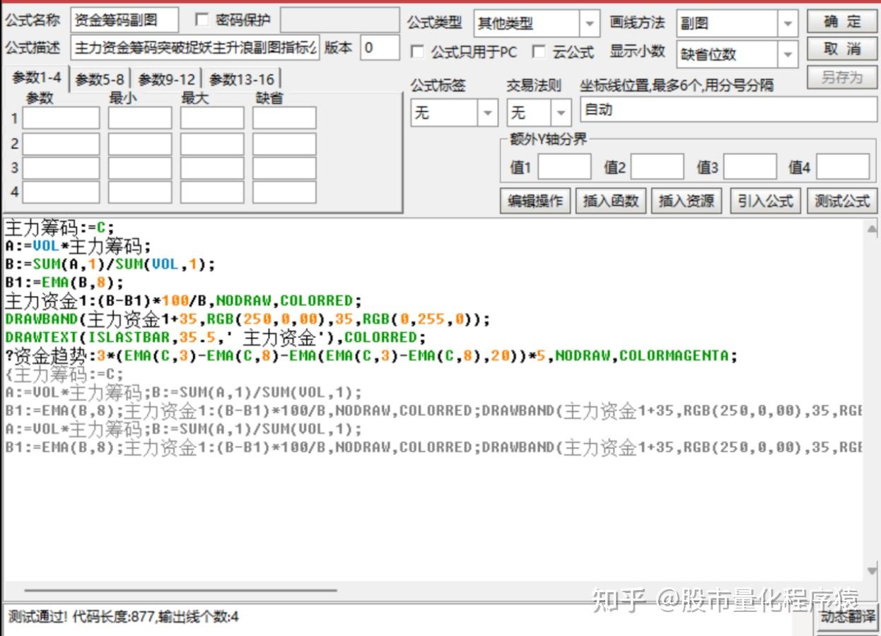 B1:=EMA(B,8);主力资金1:(B-B1)*100/B,NODRAW,COLORRED;DRAWBAND(主力资金1+35,RGB(250,0,00),35,RGB(0,255,0));DRAWTEXT(ISLASTBAR,35.5,' 主力资金'),COLORRED;?资金趋势:3*(EMA(C,3)-EMA(C,8)-EMA(EMA(C,3)-EMA(C,8),20))*5,NODRAW,COLORMAGENTA;主力筹码:=C;