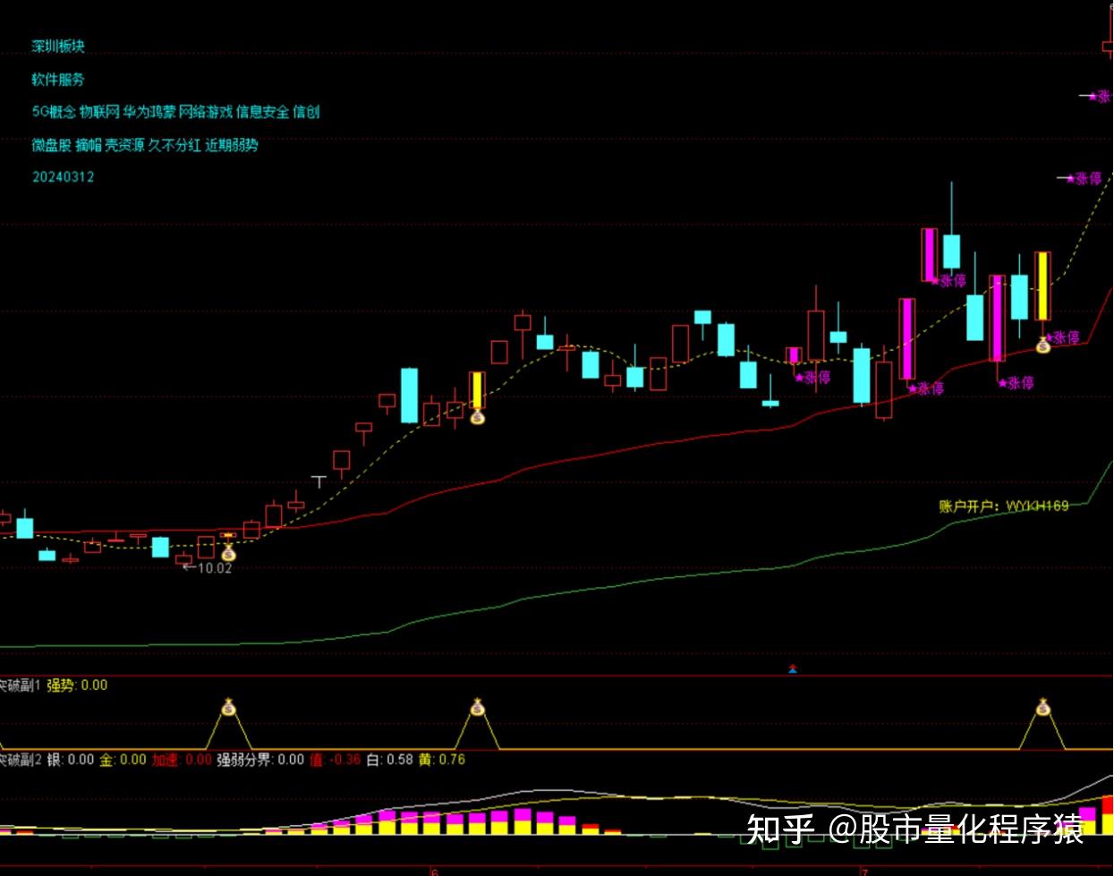 本套指标过滤掉了空头趋势,出信号的地方均可以重点关注,并添加了题材板块、上市时间等信号,供参考。