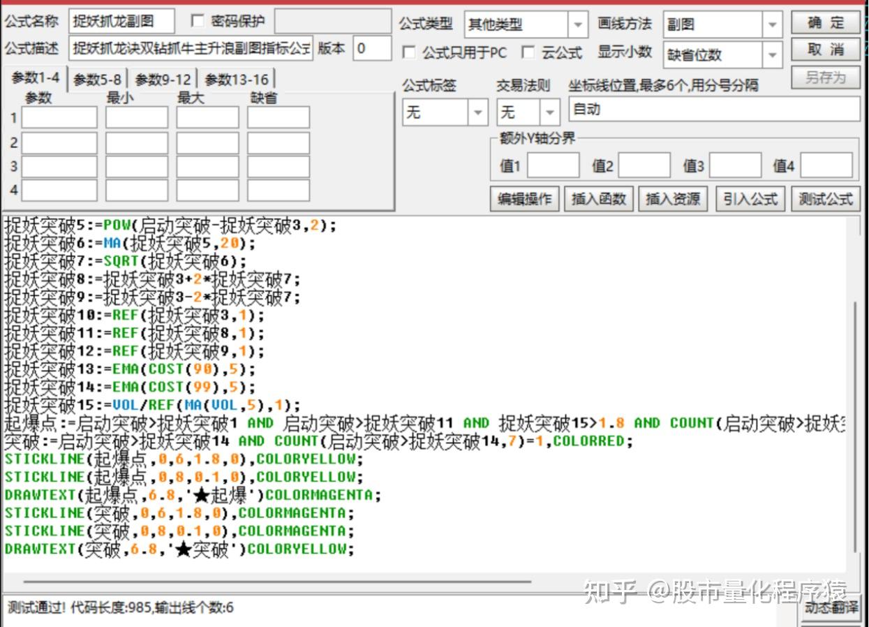 捉妖抓龙诀双钻抓牛主升浪副图指标公式: