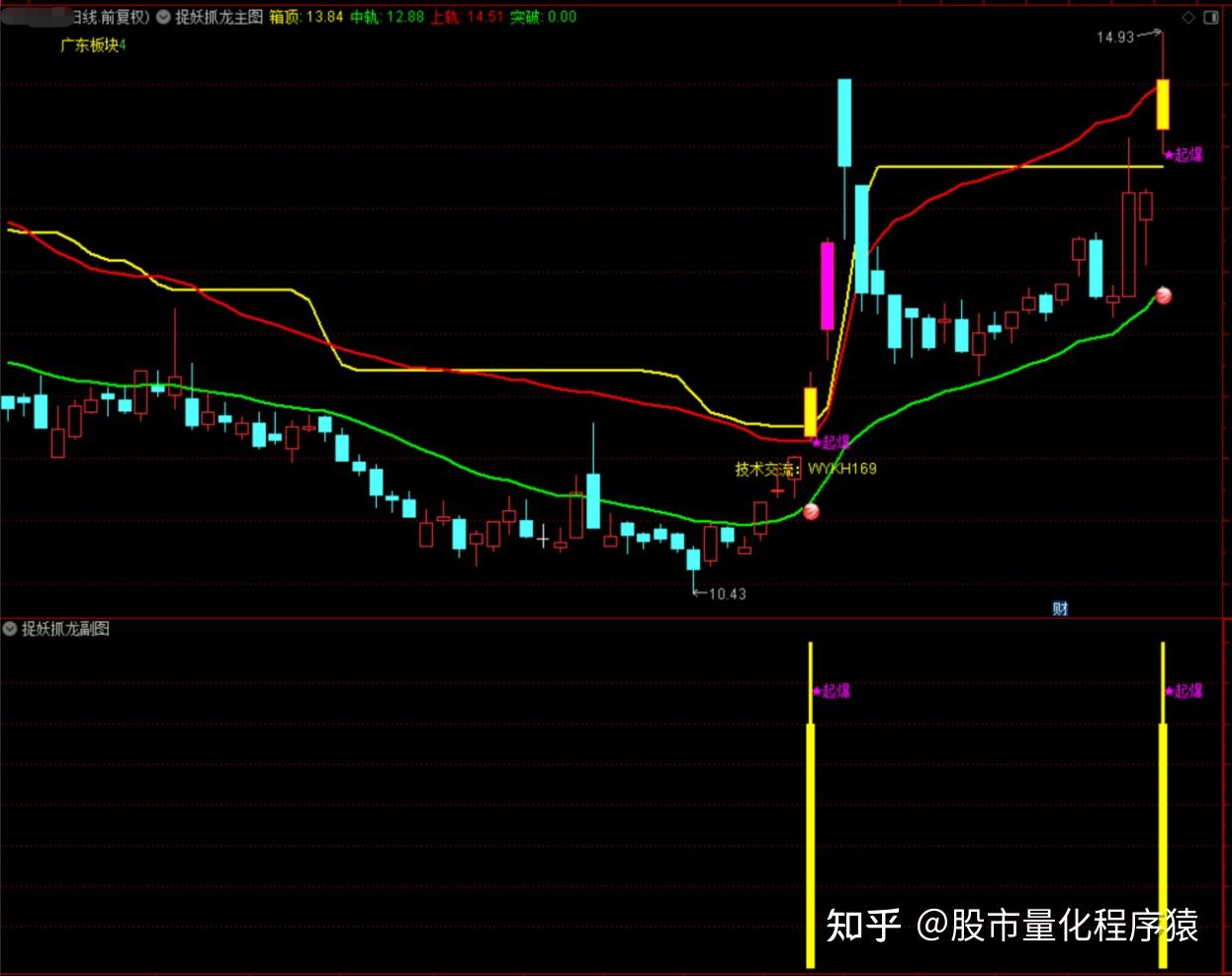 捉妖抓龙诀双钻抓牛主升浪主图指标公式: