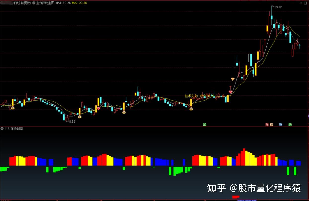 指标简介:指标是一个专注于识别和追踪具有特殊上涨潜力的“妖股”,通过独特的色彩与符号系统,捕捉难得的盈利机会。
