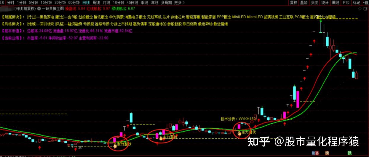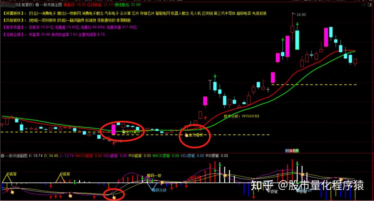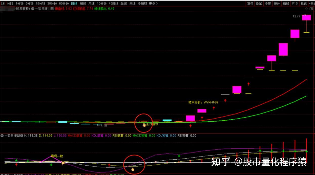 筹码跟庄一致共振捉龙头波段主升浪副图指标公式