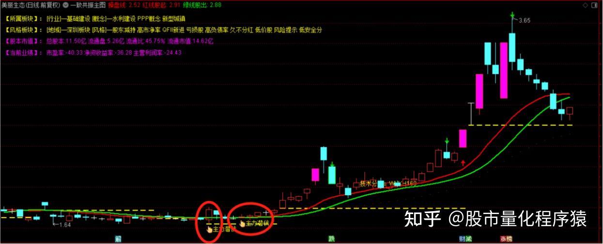 MA1:=MA(筹码突破,24),COLOR00E300,LINETHICK1;