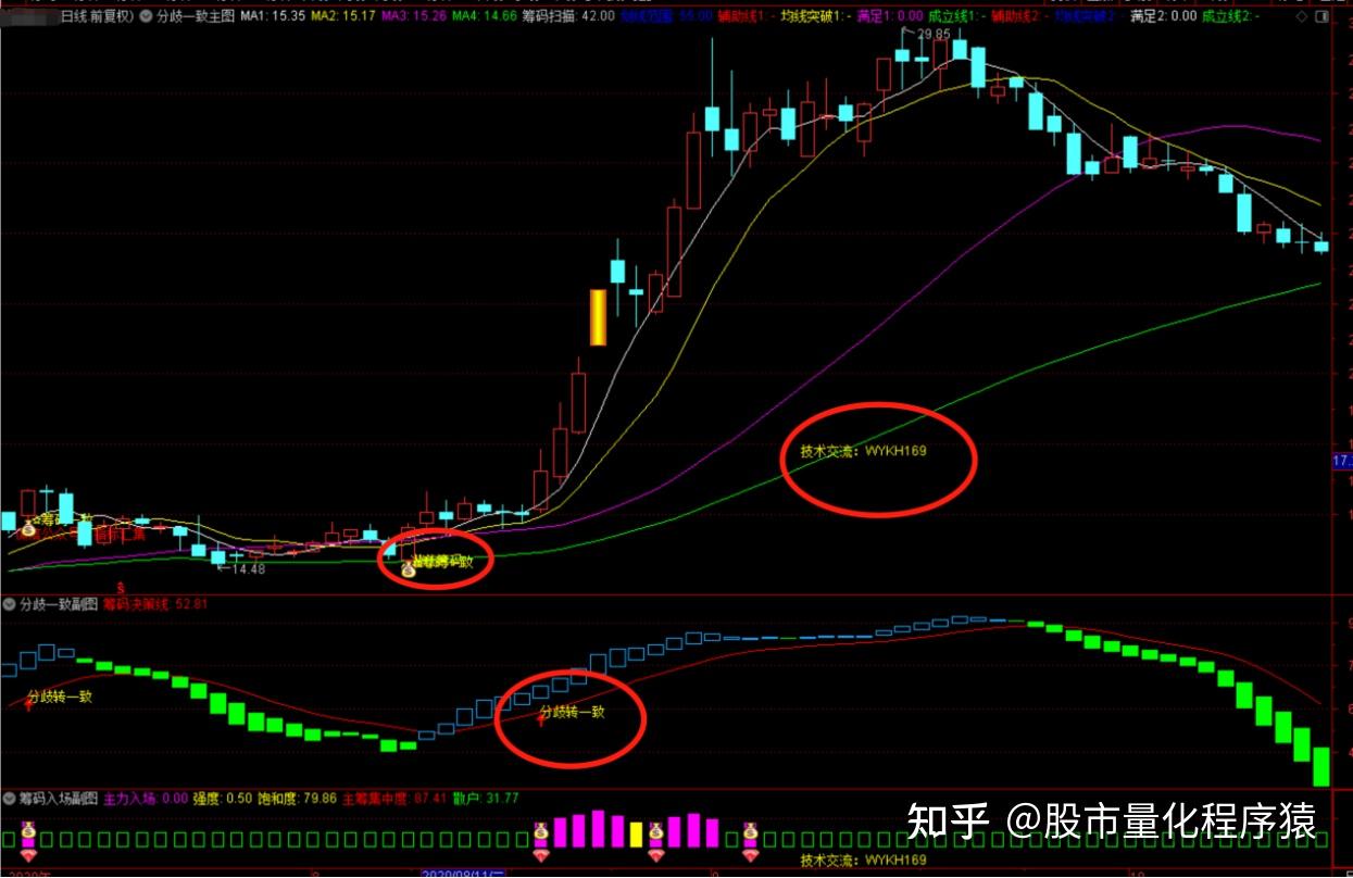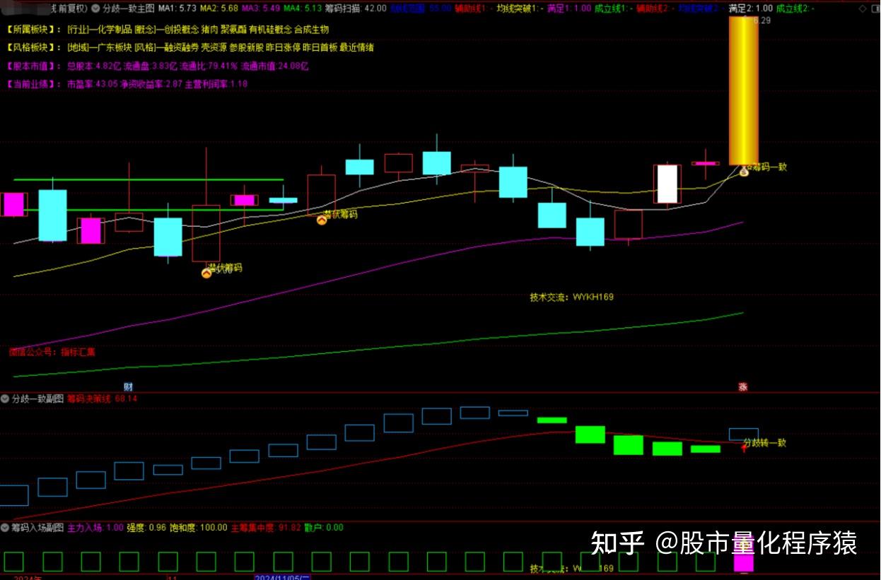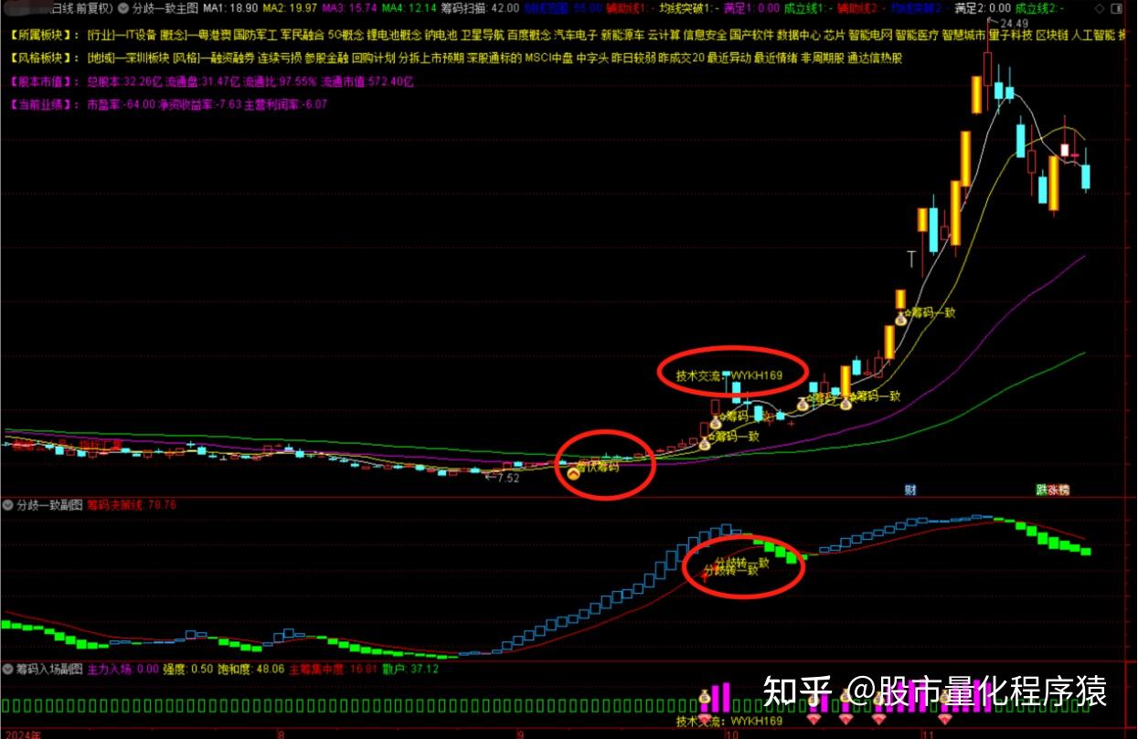 2.确定性买点一定是主图筹码一致加上副图分歧转一致共振之下的打板买入。