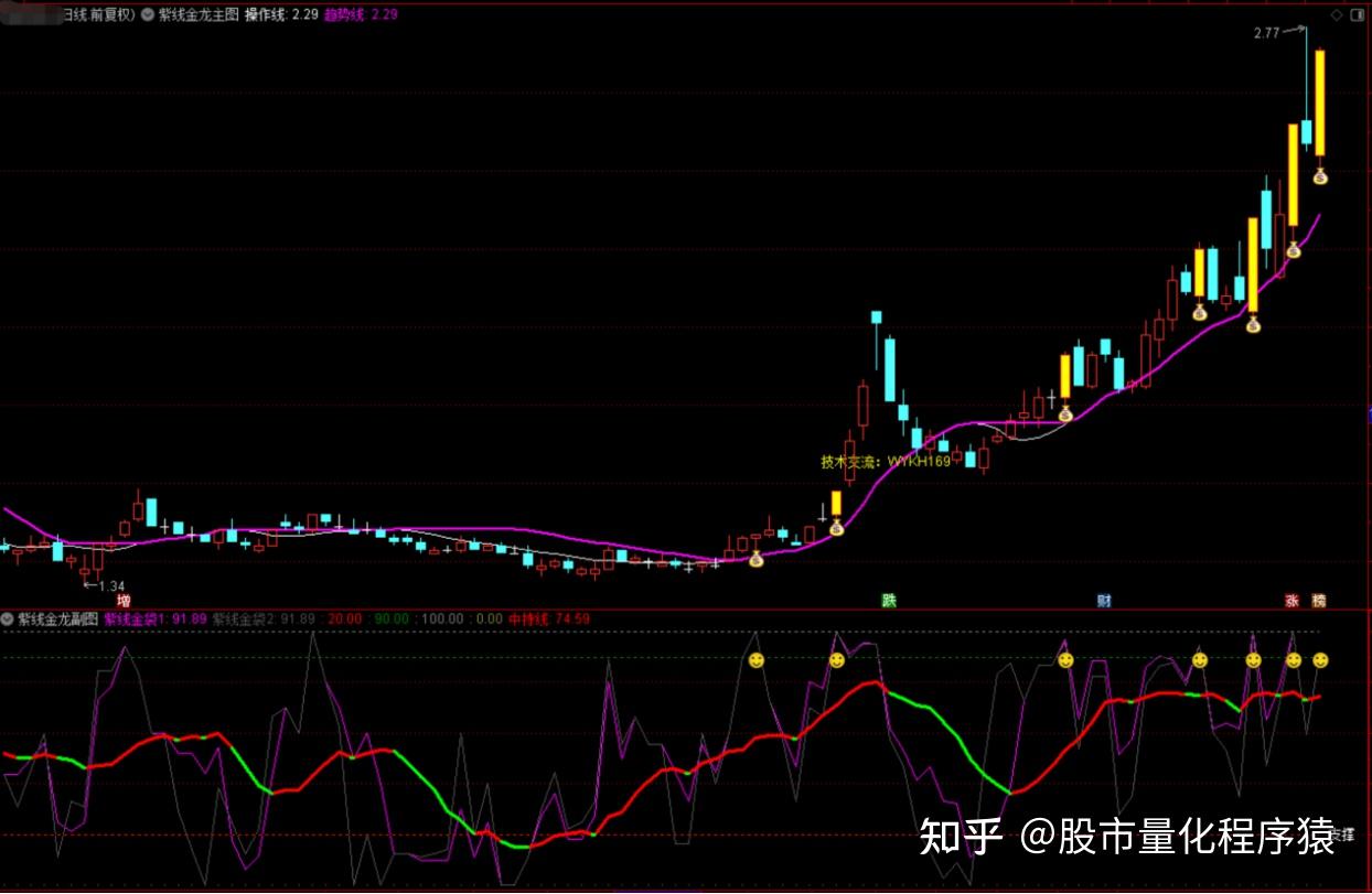 主力紫线金龙突破捉龙头主升浪副图指标公式: