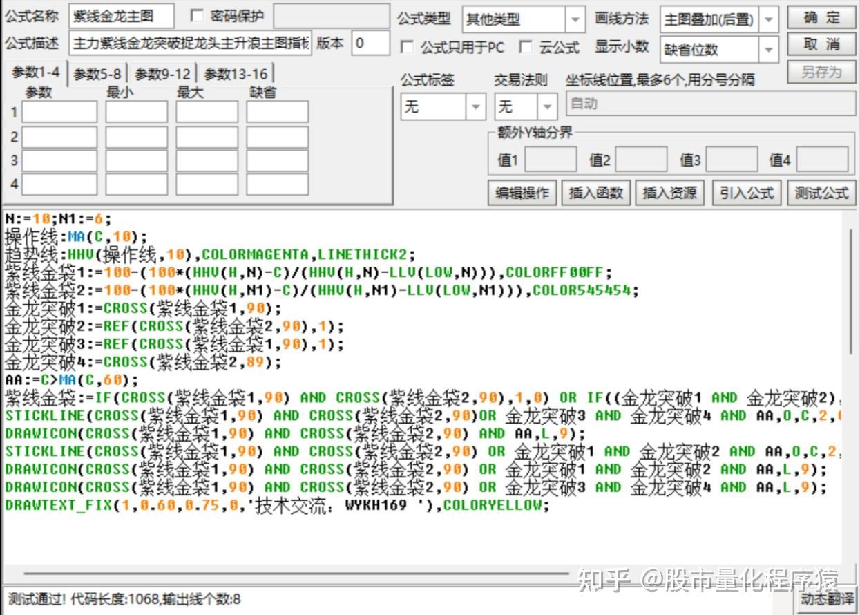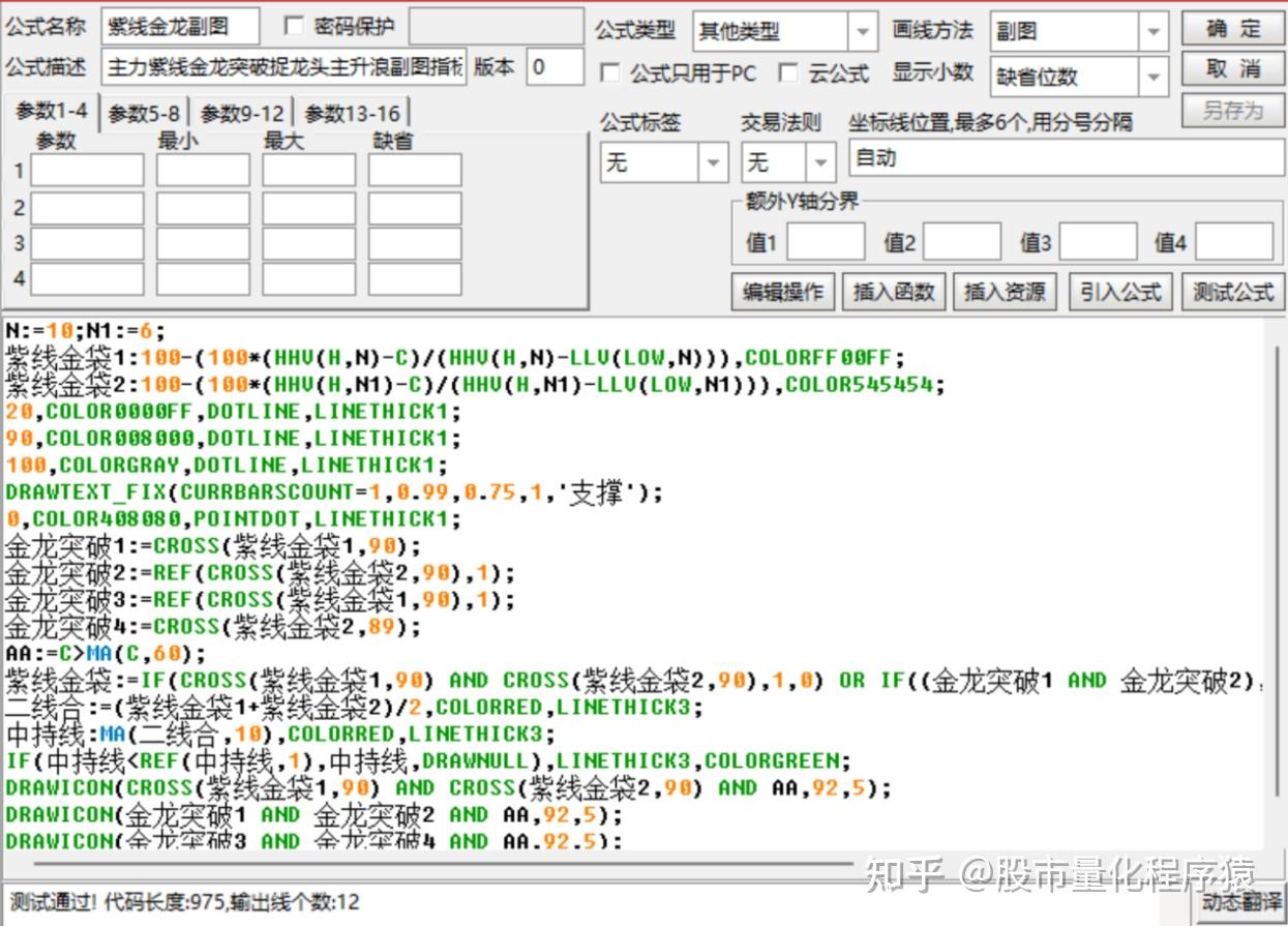 紫线金袋:=IF(CROSS(紫线金袋1,90) AND CROSS(紫线金袋2,90),1,0) OR IF((金龙突破1 AND 金龙突破2),1,0) OR IF((金龙突破3 AND 金龙突破4),1,0);