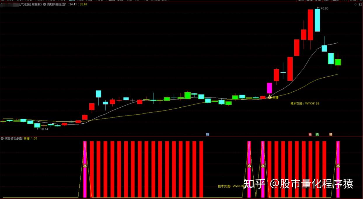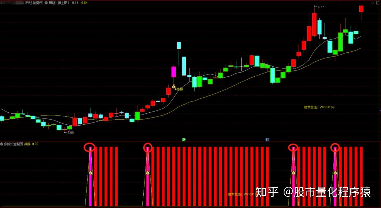 机构-游资-主力-散户多路资金共振擒龙指标简介:”思路共振”指标,它将成交量、当前流通股本、OBV(累积能量线)以及多空主动买卖力量相结合,即捕捉机构、散户、游资和主力资金(四路)在市场中的共振效应。