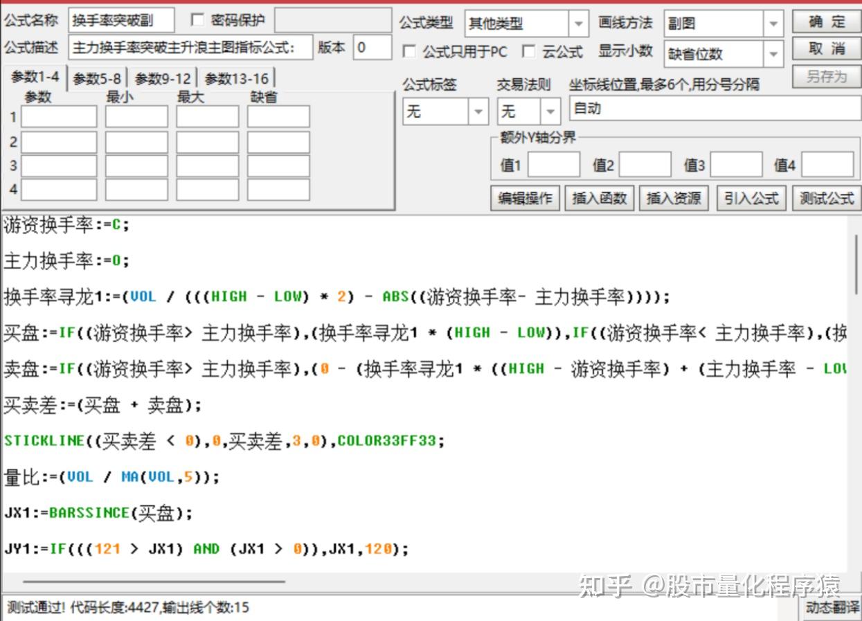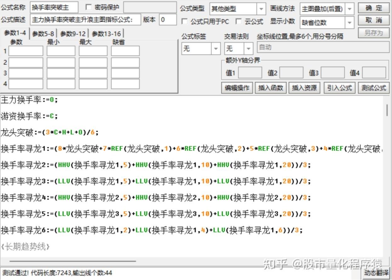 换手率寻龙9:=IF(((VOL / CAPITAL) > 0.001),1,EXP(ABS(LOG(((VOL / CAPITAL) * 100)))));