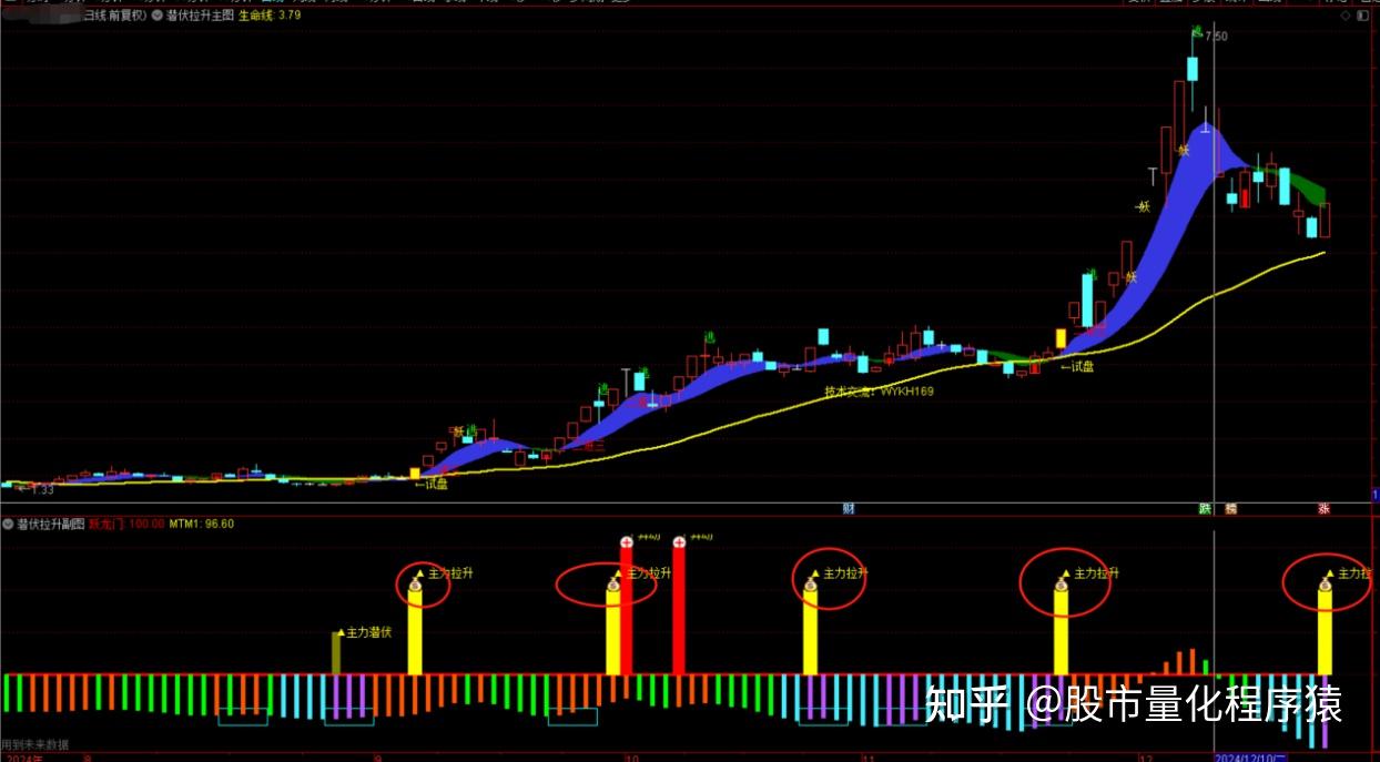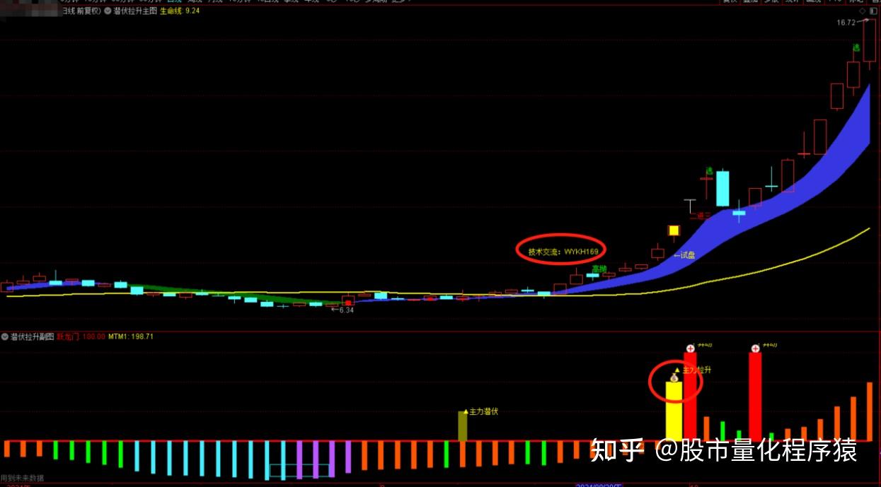 主力潜伏拉升异动突破擒主升浪主图指标公式