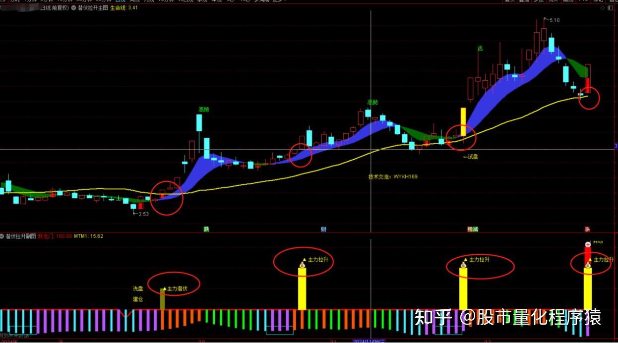 主力潜伏拉升异动突破擒主升浪副图指标公式