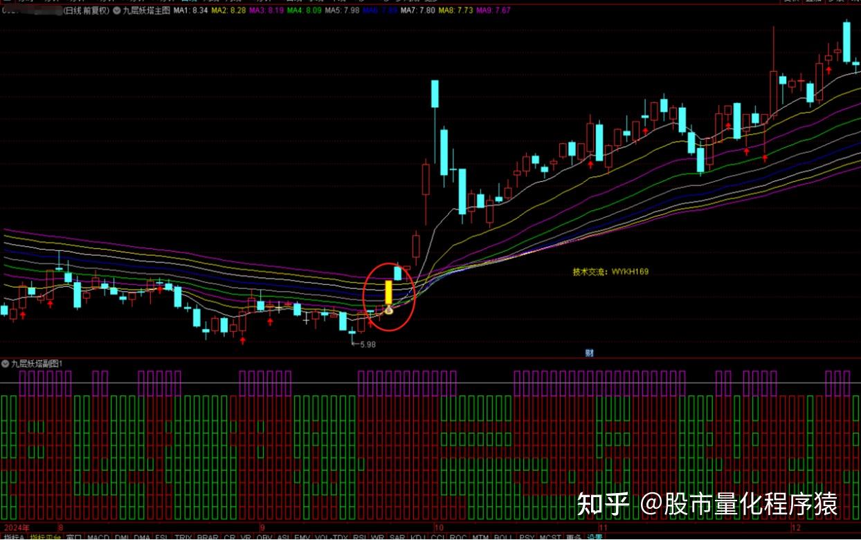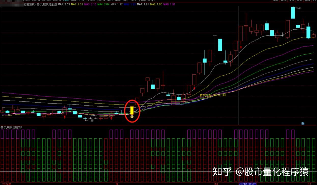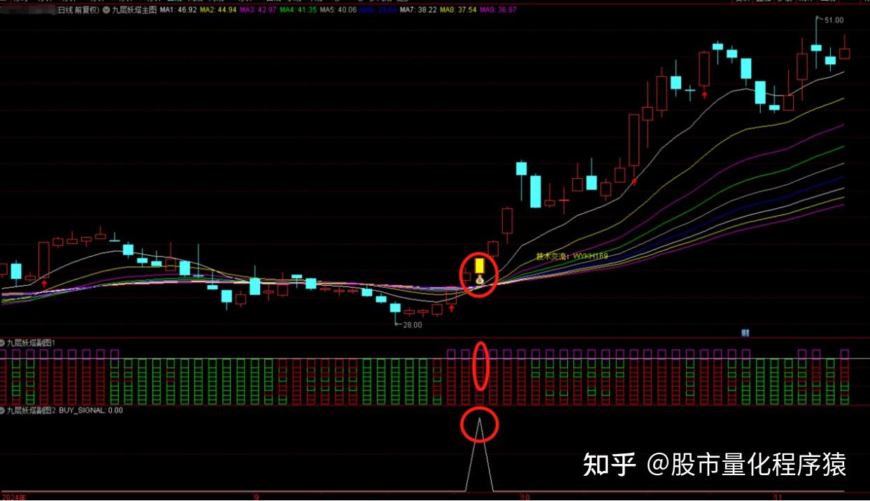 九层妖塔九大金叉与K线组合共振擒主升浪主图指标公式
