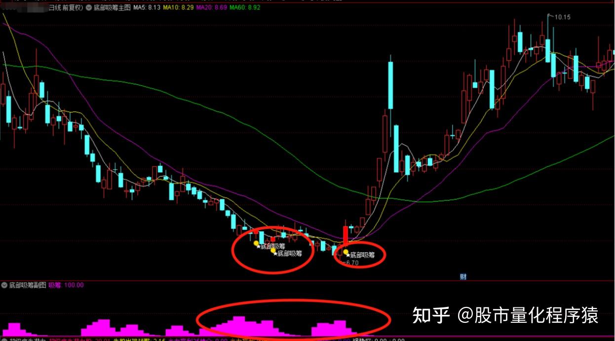 1、观察底部信号:当主图上出现红色K线和文字“底部吸筹”时,表示个股可能正处于底部吸筹阶段。此时可以密切关注该个股,等待进一步的确认信号。