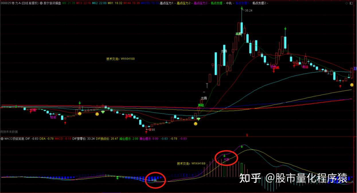 DRAWTEXT(MACD顶背离,REF(J1,D1+1),'M顶'),COLOR0066FF;