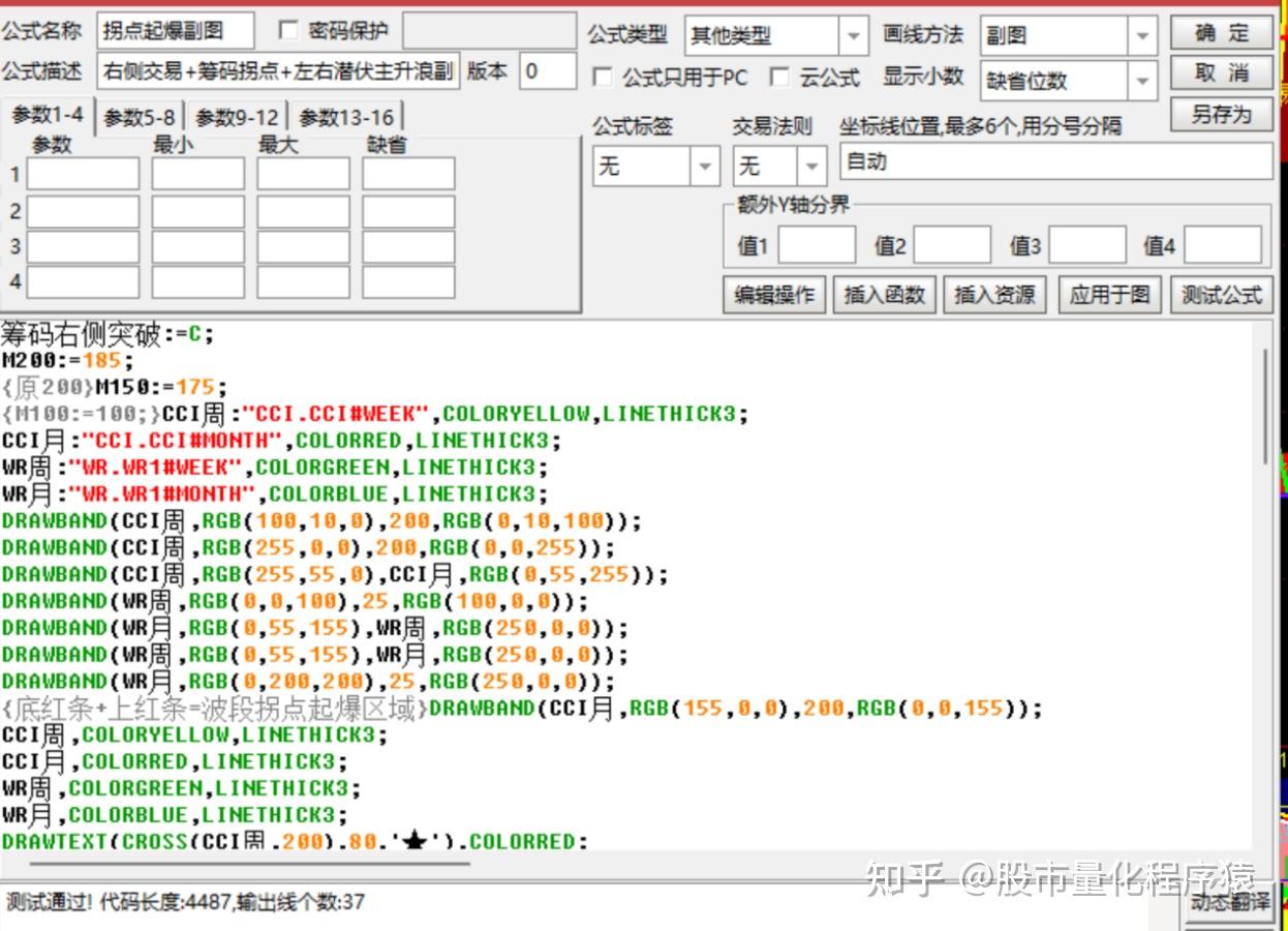 准备起爆4:=CROSS(CCI周,WR周);STICKLINE(准备起爆4,134,0,0.00001,0),COLORMAGENTA;