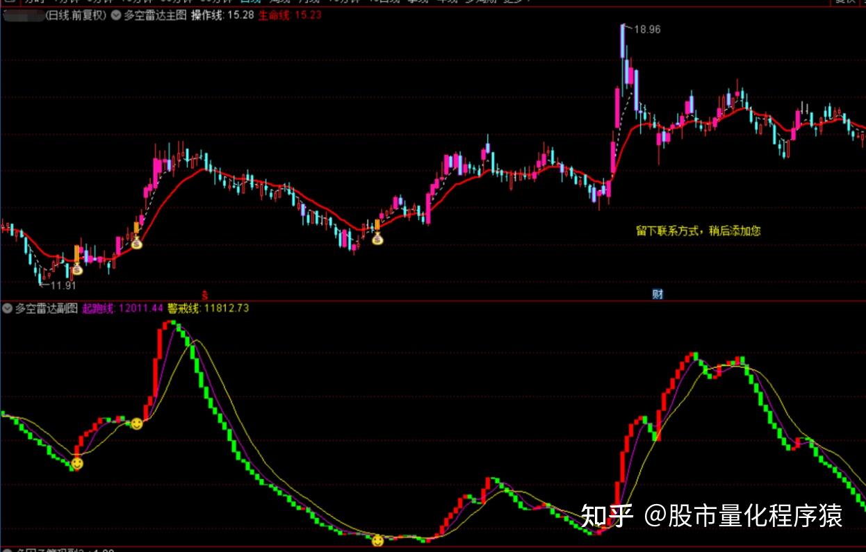 -当主力做多信号出现时,副图显示”笑脸”信号;