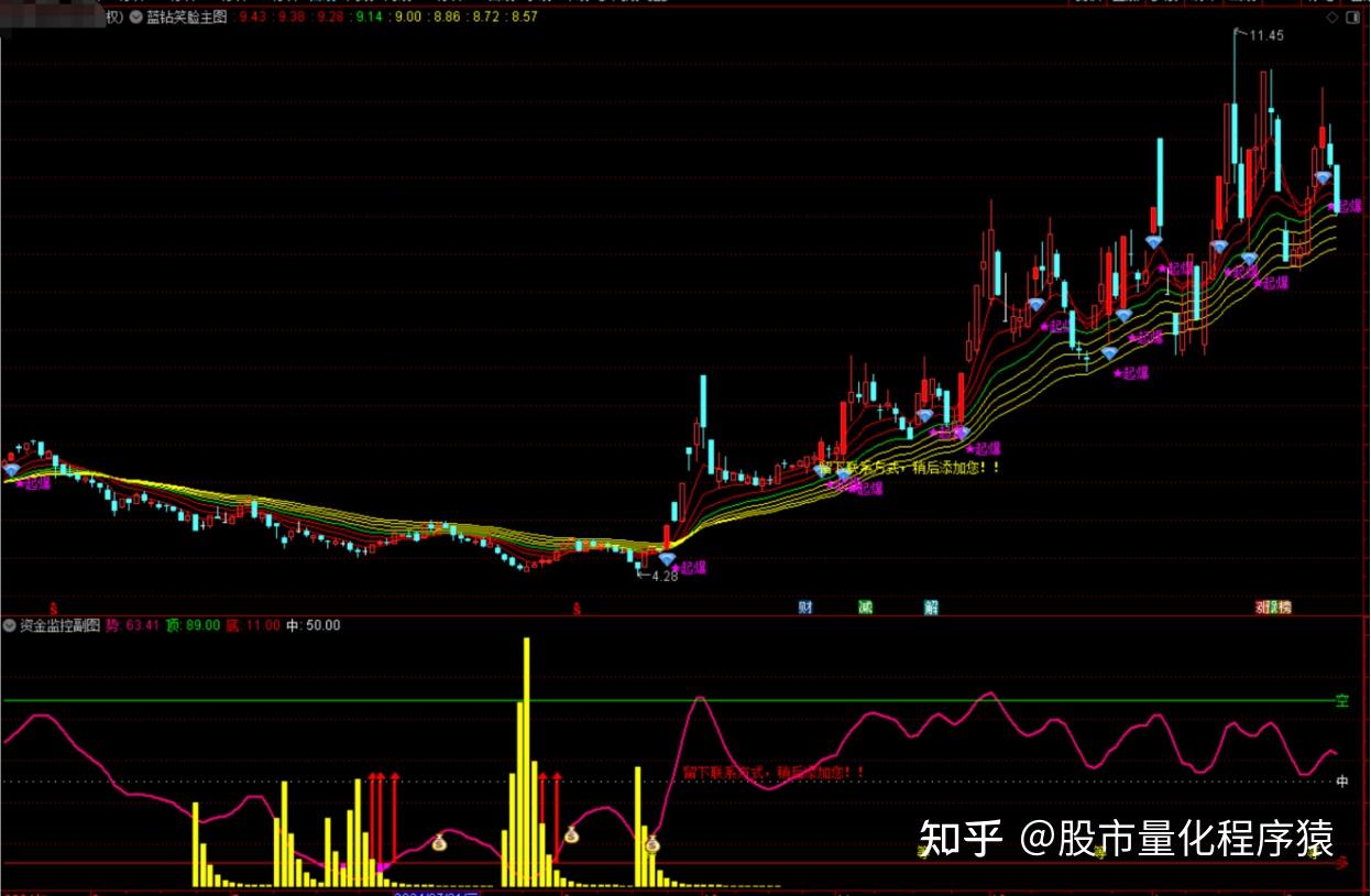 章鱼7:=EMA(IF(LOW<=章鱼4,(章鱼3+章鱼5*2)/2,0),3)/618*章鱼6;