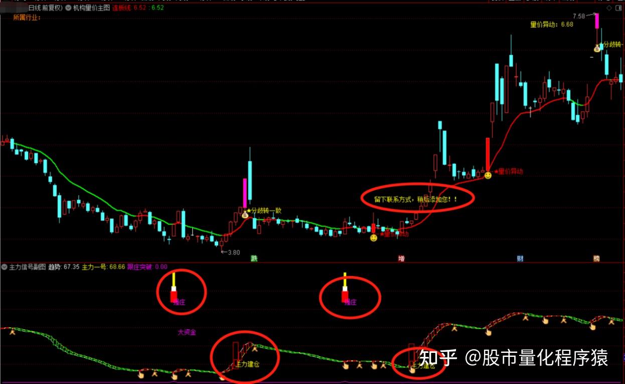 主力跟庄建仓信号+强庄信号共振副图指标公式