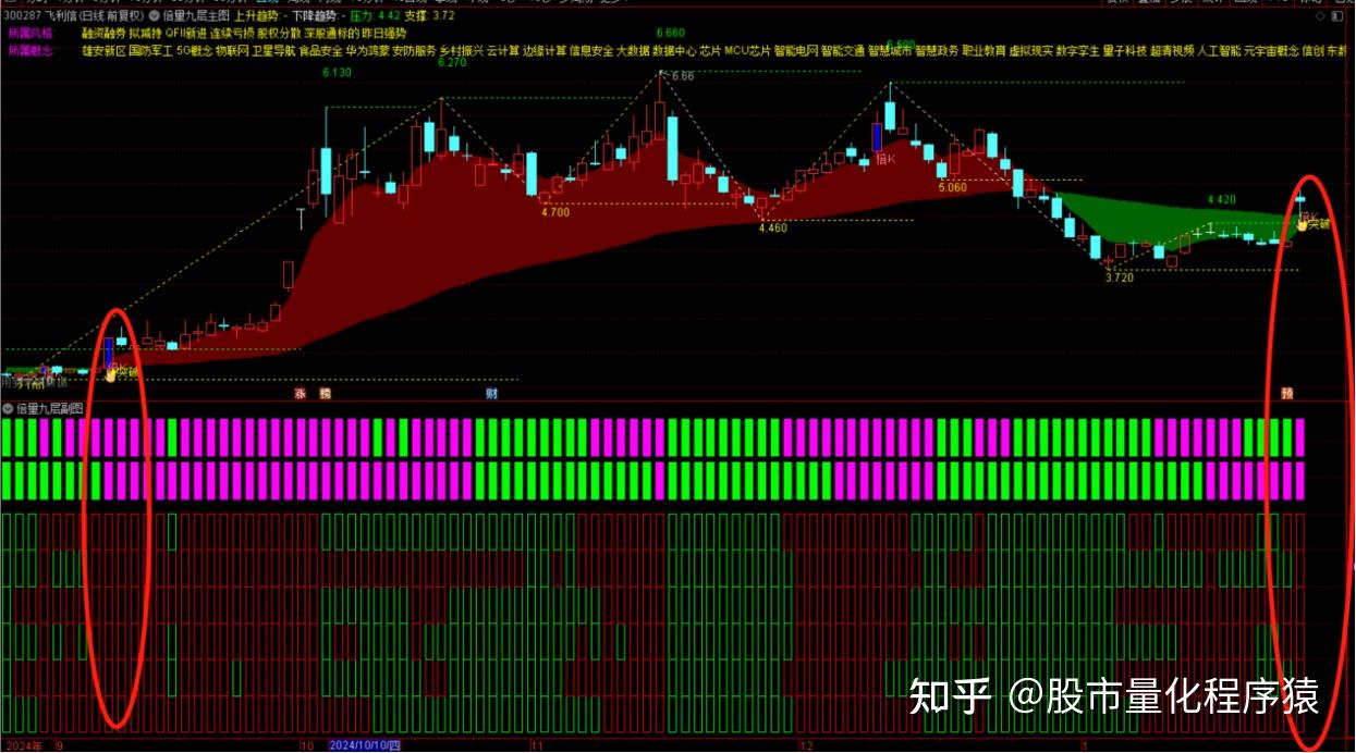最低:=IF(BARSLAST(高点)=BARSLAST(低点) AND MA(C,10)>MA(C,5),低点,IF(BARSLAST(高点)>BARSLAST(低点),低点,0));