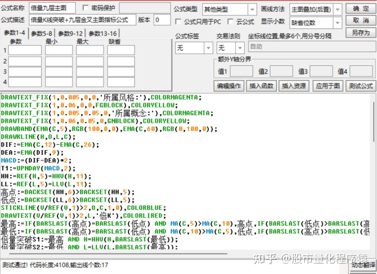 压力:DRAWLINE(倍量突破S17,H,REF(倍量突破S17,1),REF(H,1),1),COLORGREEN,DOTLINE;