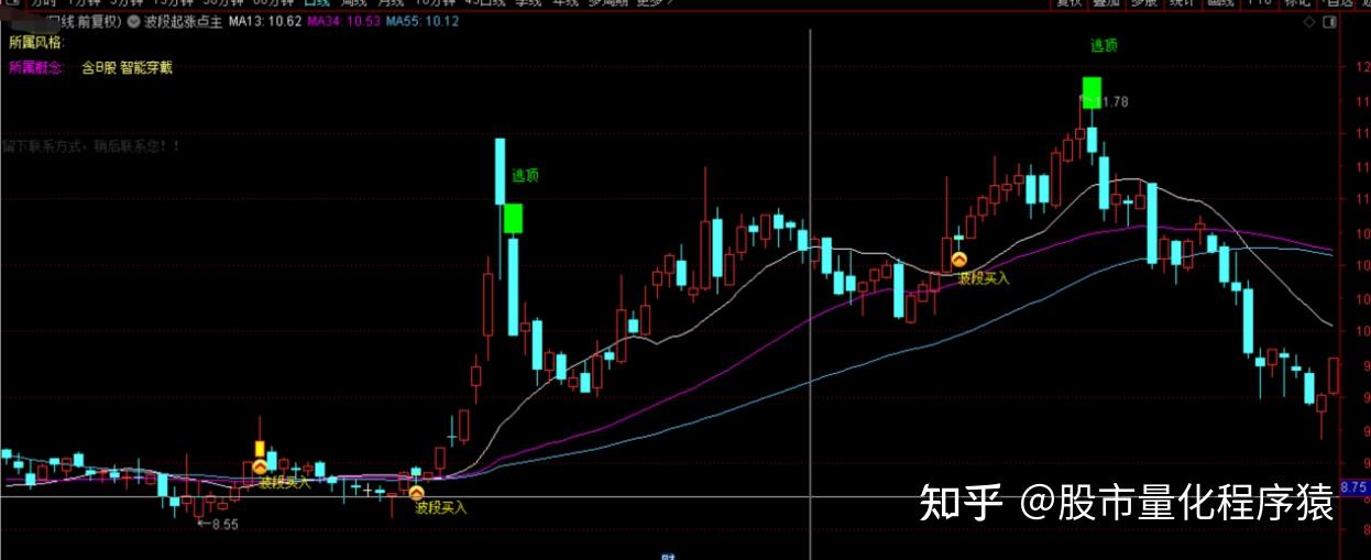 DRAWTEXT(CROSS(天线,多方趋势),H*1.04,'逃顶'),COLOR00FF00;