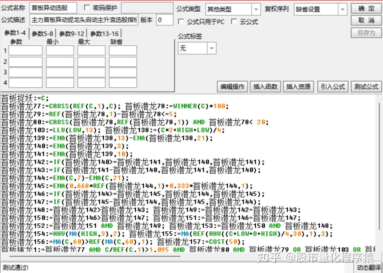 首板潜龙103:=LLV(LOW,13); 首板潜龙138:=(C*2+HIGH+LOW)/4;