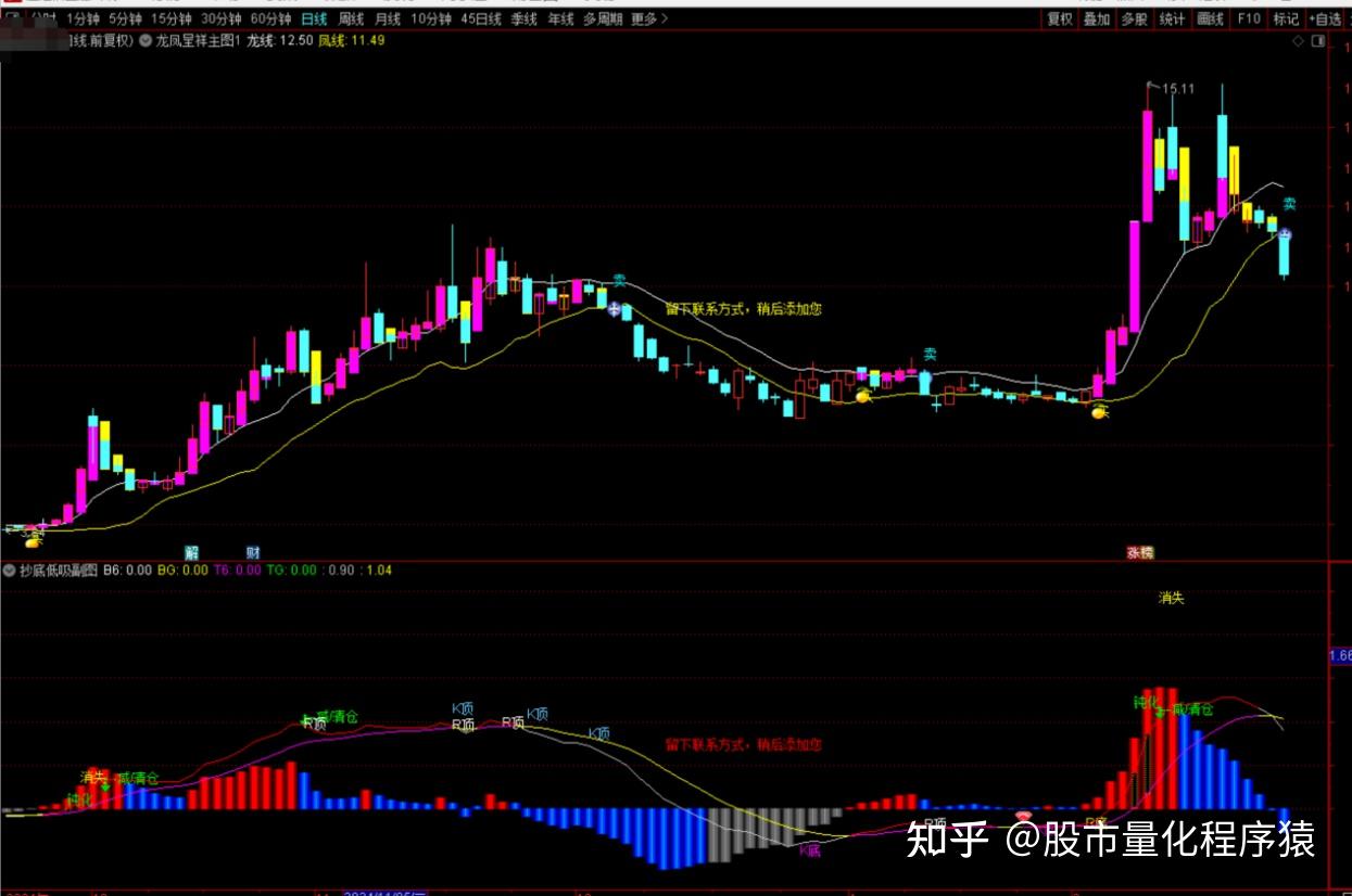 DRAWTEXT(TFILTER(TG,MACD< 0,1),DIF*1.02,'M顶背'),COLORMAGENTA;