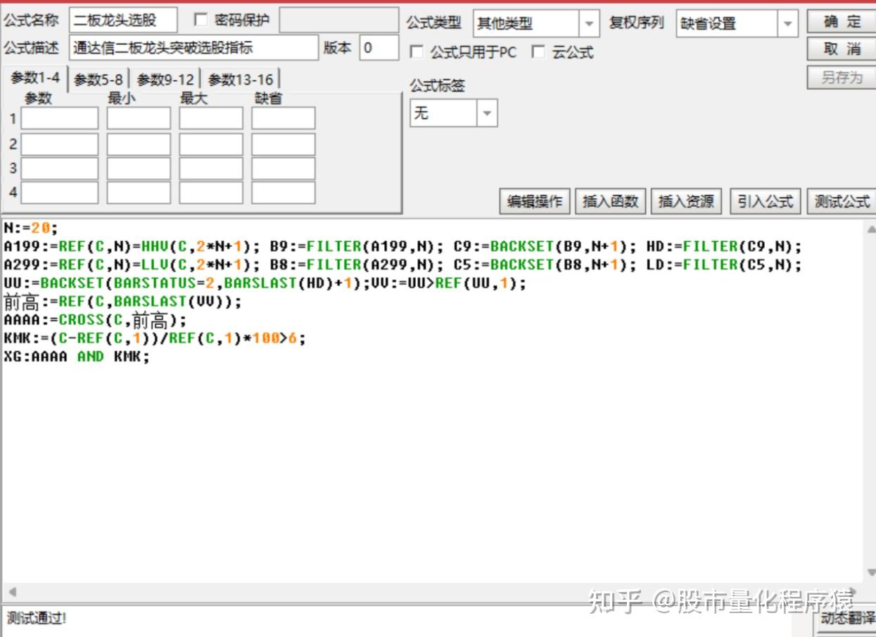 寻龙决:=VOL>=REF(V,1)*1.9 AND (IF(C< O,C>REF(C,1),1)) AND (C-REF(C,1))/REF(C,1)*100>4 AND C< 19 AND MA(VOL,4)>MA(VOL,16) AND C>MA(C,30) AND C>MA(C,78) AND C>MA(C,5) AND C>MA(C,10) AND C>MA(C,20) AND (C-REF(C,3))/REF(C,3)*100< 29 AND (C-REF(C,6))/REF(C,6)*101< 40;