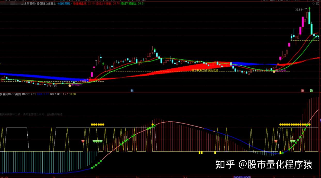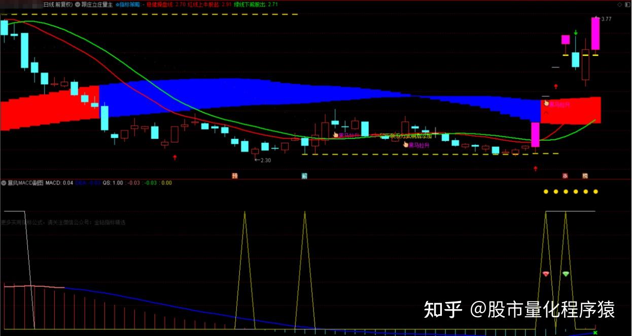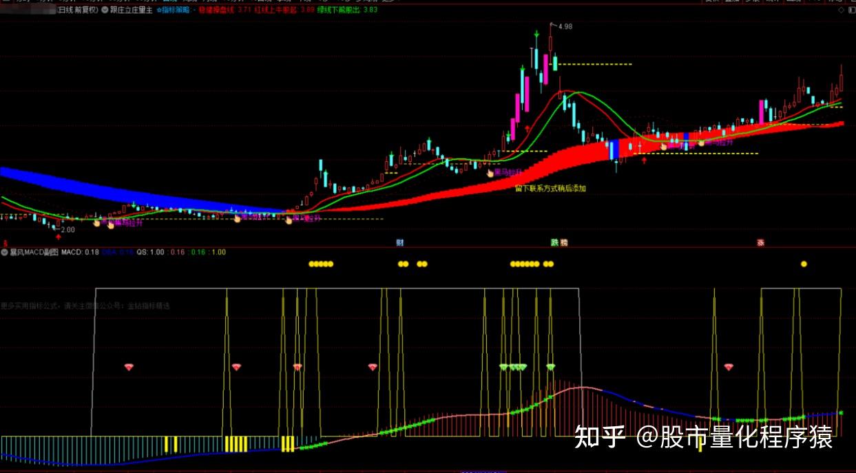 3、黄色柱体:黄色柱体是均线高度粘合的标志,它表示短期和长期均线之间的距离逐渐拉近,通常预示着行情即将启动。