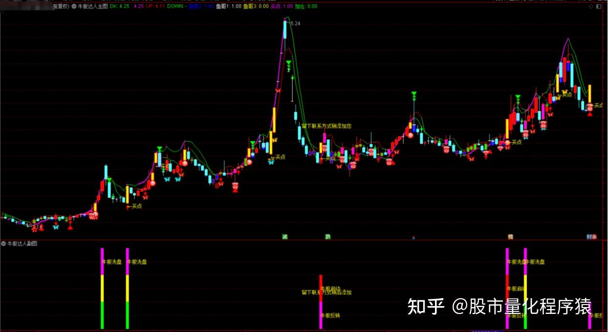 2.主图买点信号,副图牛股反转信号共振是见底买点。