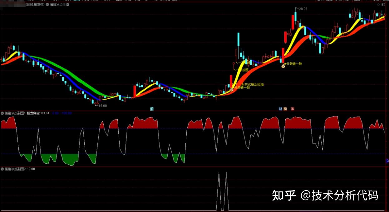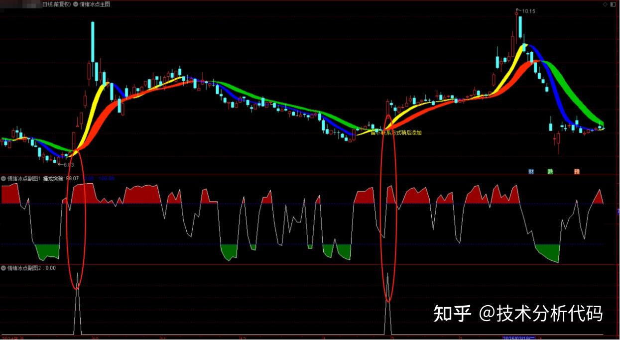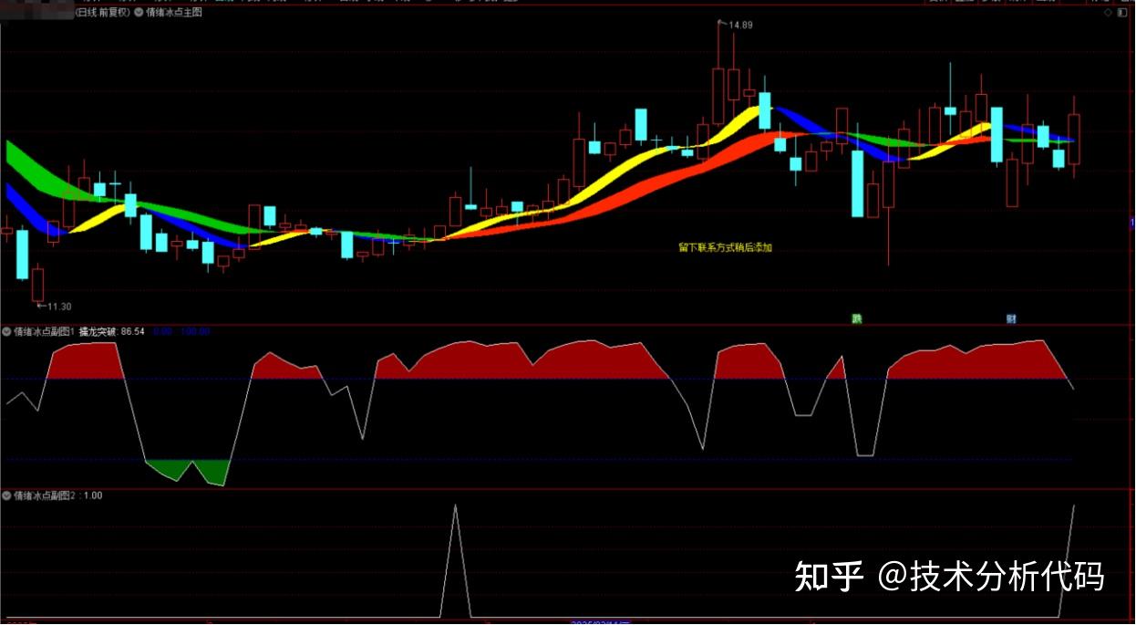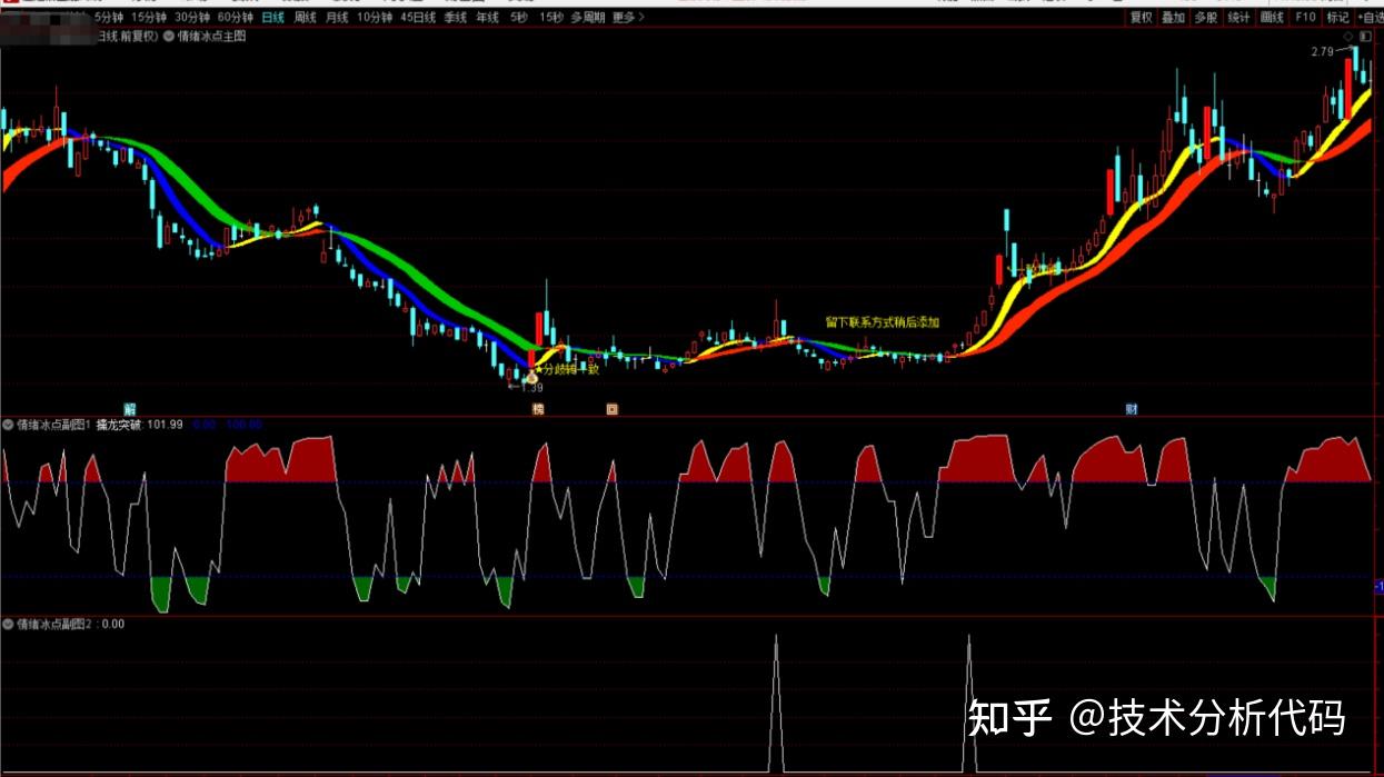 3.副图最近周期出现向下绿色谷形态,说明进入了情绪冰点行情。