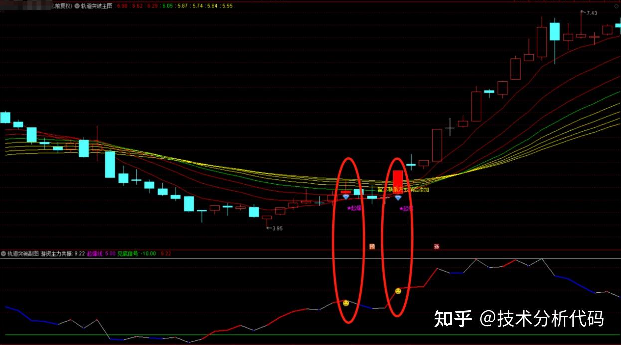 多轨道突破蓝钻+笑脸信号共振选股指标公式