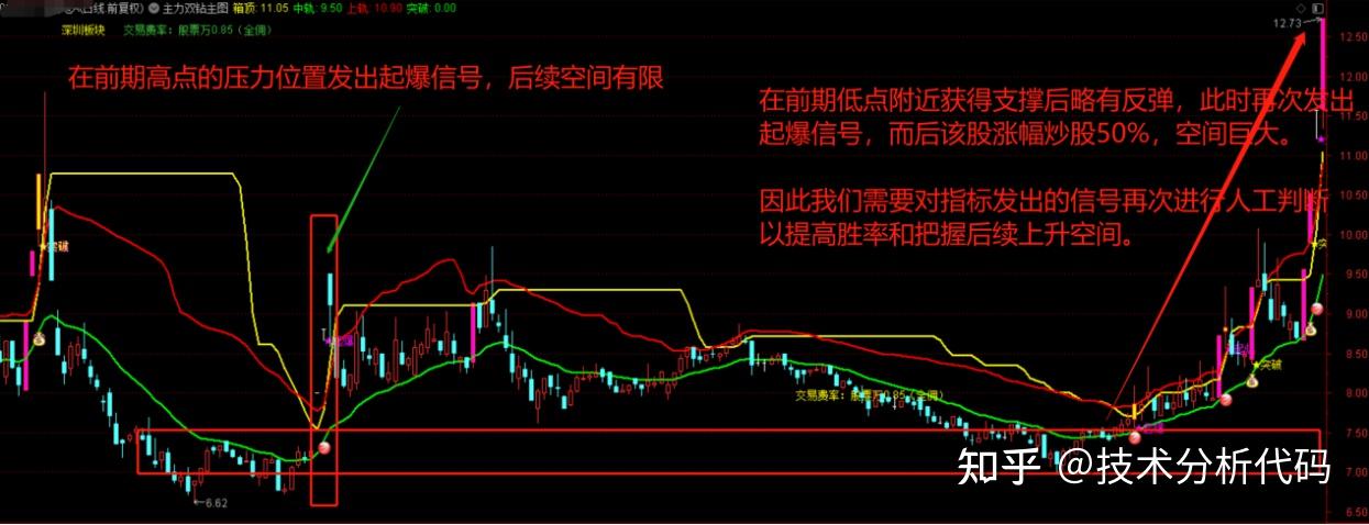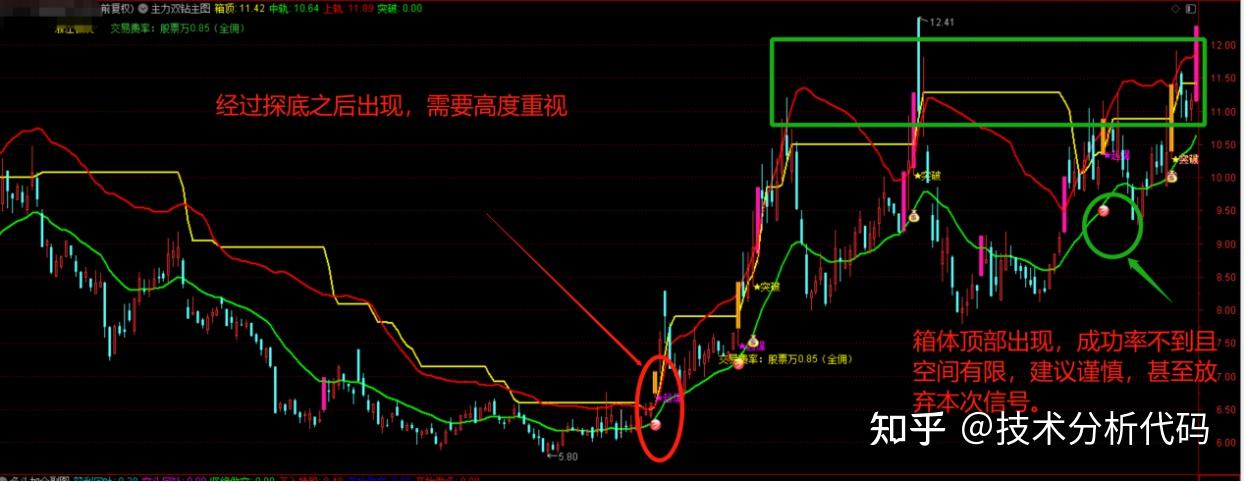 首先判断是否处于下降趋势,如果是下降趋势的建议考虑放弃;其次判断是否处于K线压力位置,如果是建议谨慎,因为即便后续还有空间,空间大概率也不大;最好对于筛选出来的标的进行人工选择那些处于下跌之后的二次探底或箱体底部支撑位置的,该类个股不仅成功率高而且空间比较大。