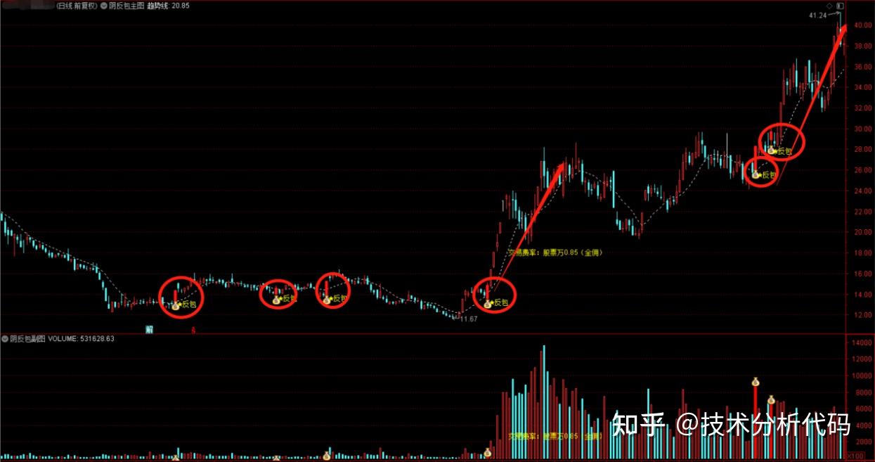 度),当以上所有条件都满足时,出“出钱袋子,反包”信号,意味着有资金在积极买入,推动股价上涨;