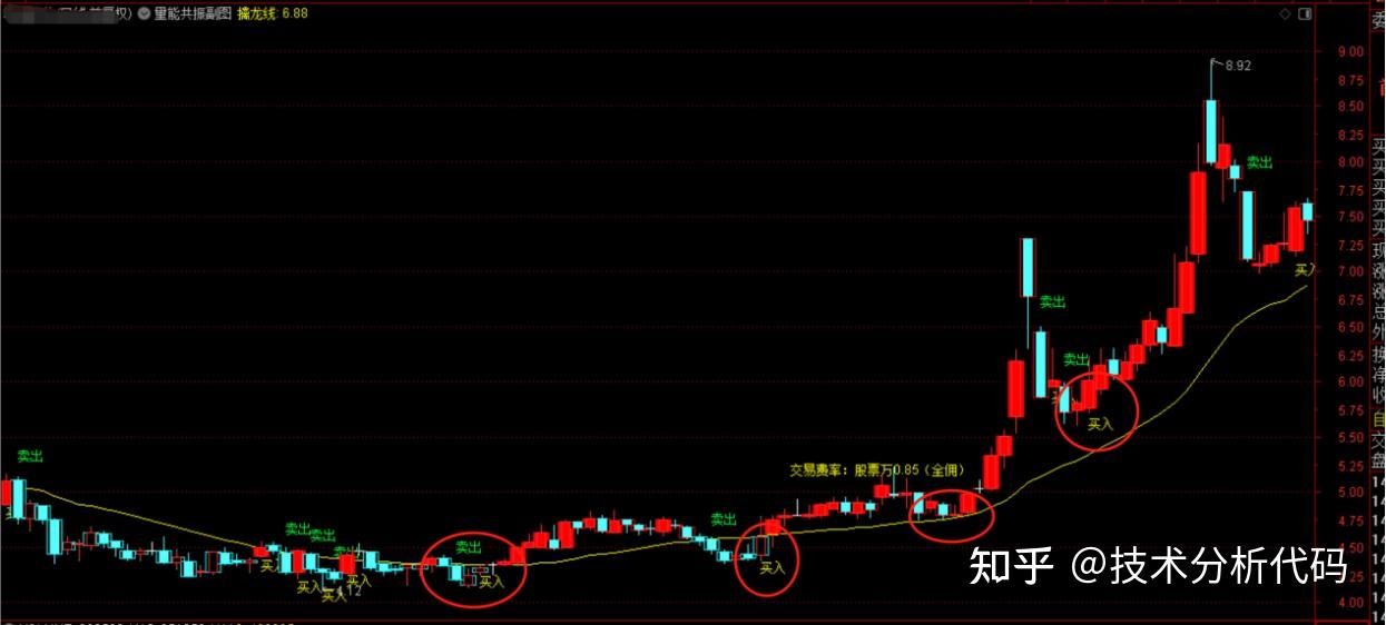 第四个红圈出现时,股价远离擒龙线,在信号出现几天之后,短线介入的获利空间依旧不菲。