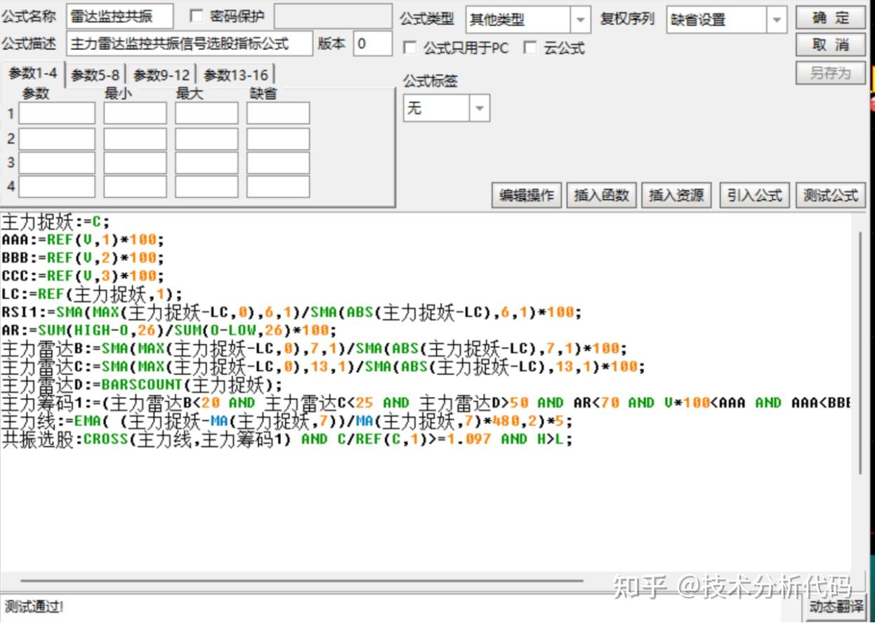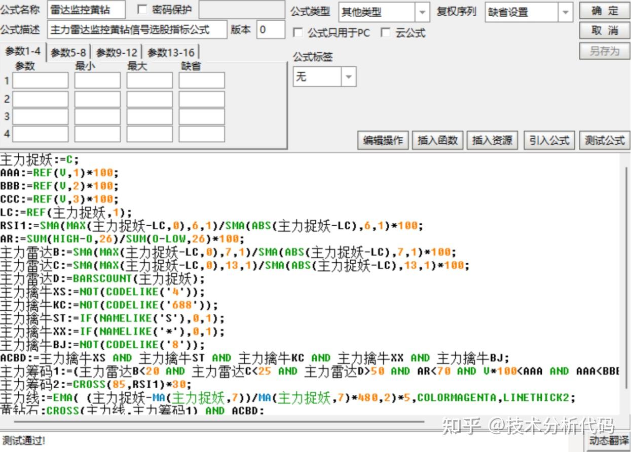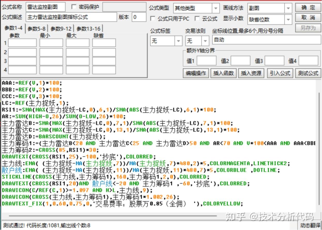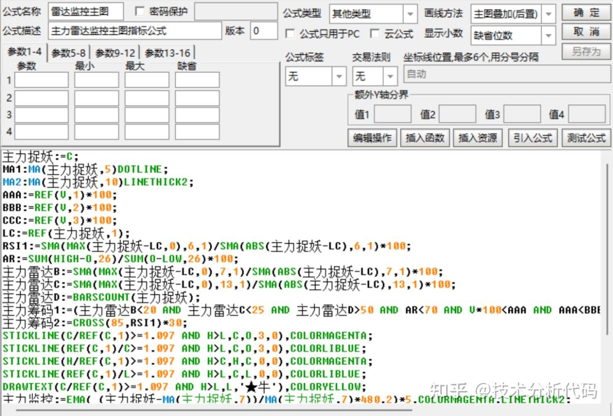 主力雷达监控指标公式简介