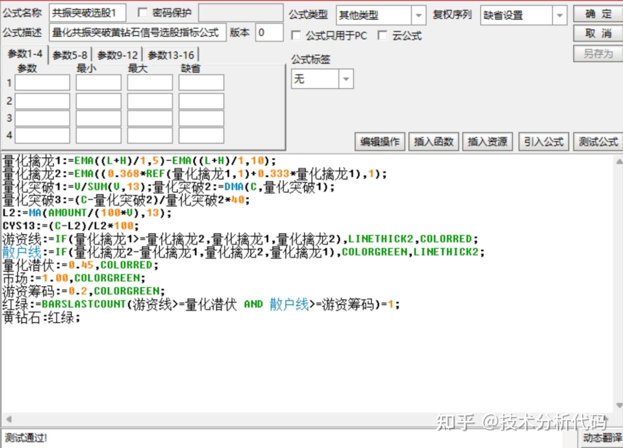 量化突破1:=V/SUM(V,13);量化突破2:=DMA(C,量化突破1);