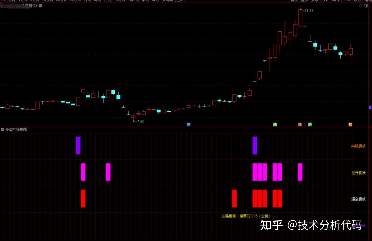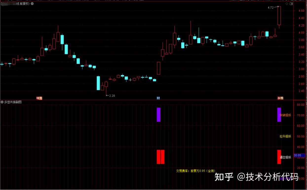 分为:突破涨停、拉升涨停、逼空涨停和超跌涨停,在副图对应位置均有显示,并做了优化。信号较多,做一个突破捉妖+拉升捉妖,或逼空捉妖+拉升\突破的共振信号;