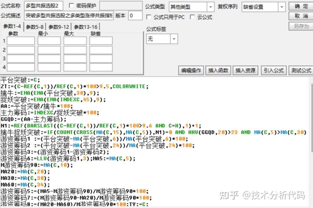 擒牛捉妖突破:=IF(COUNT(CROSS(MA(C,15),MA(C,5)),N1)=0 AND HHV(GGQD,20)>23 AND MA(C,5)>MA(C,30) AND GGQD<HHV(GGQD,30) AND GGQD>5 AND (C-REF(C,1))/REF(C,1)*100>9.6 AND C=H,-9,0),COLORBLUE;游资筹码1 :=(平台突破-MA(平台突破,6))/MA(平台突破,6)*100;游资筹码2 :=(平台突破-MA(平台突破,24))/MA(平台突破,24)*100;游资筹码3:=(游资筹码1-游资筹码2);游资筹码6:=LLV(游资筹码1,3);