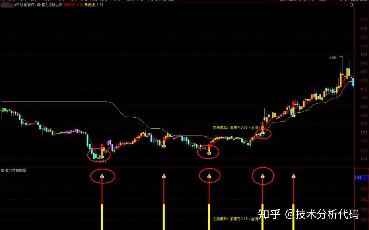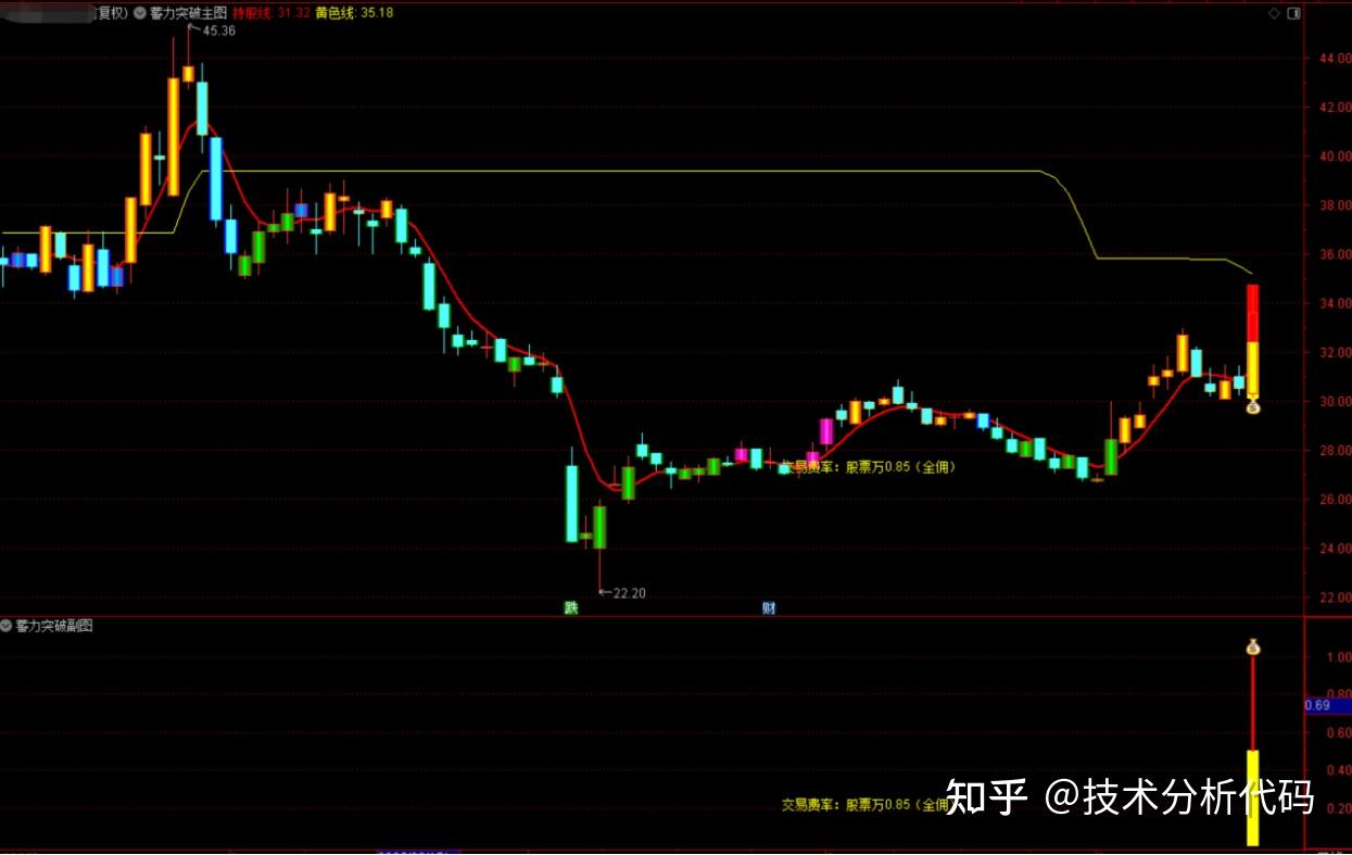黄色线:HHV(蓄力突破222,60)*0.95,COLORYELLOW;