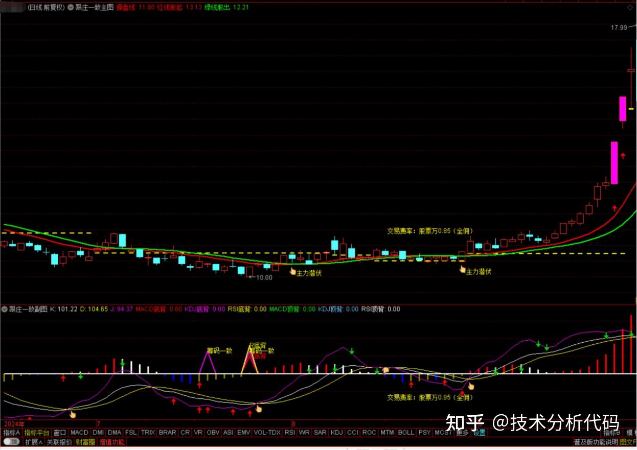 筹码跟庄一致共振主图指标公式