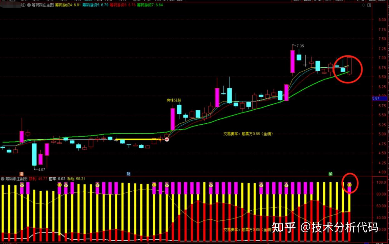 同样的,上图中我们也发现,当股价站上筹码线上方之后出现的信号更具有可靠性,而且等待的时间较短,而且涨幅更大。