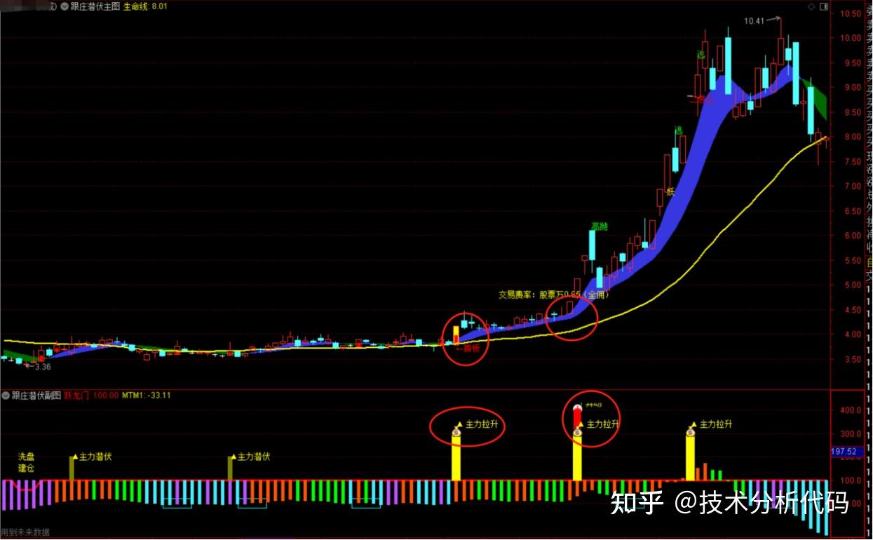 主力跟庄潜伏拉升异动突破拉升信号选股指标公式