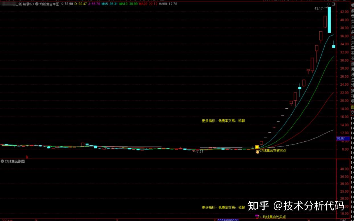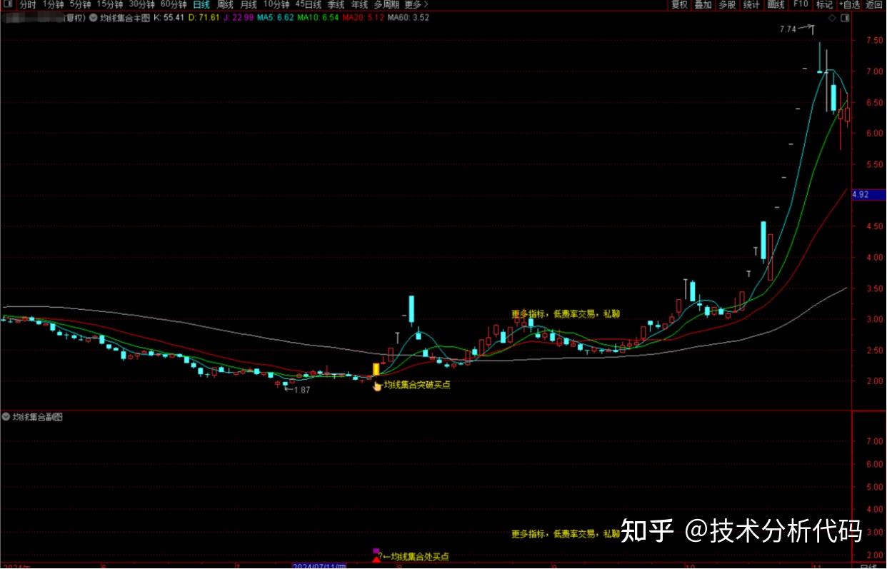 均线粘合:=最高均线/最低均线< 1.03;突破粘合:=CLOSE>最高均线 AND 均线粘合;