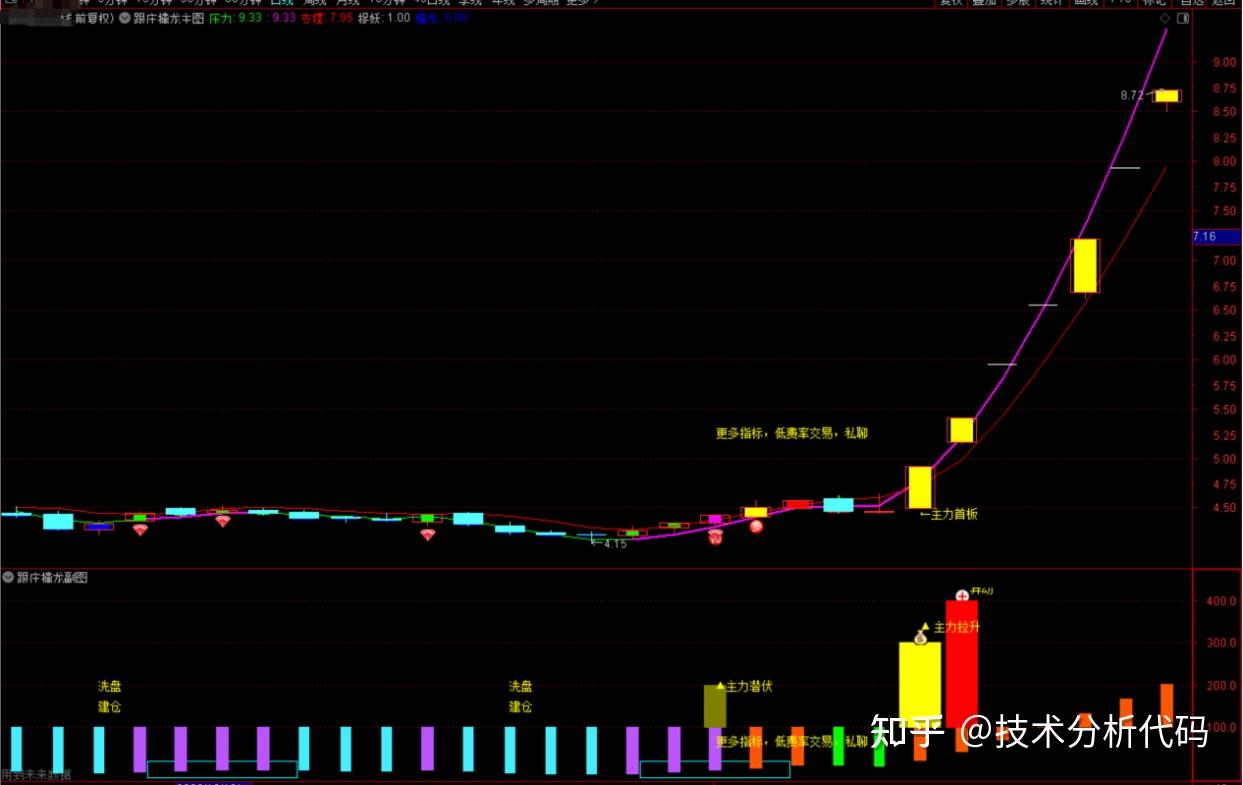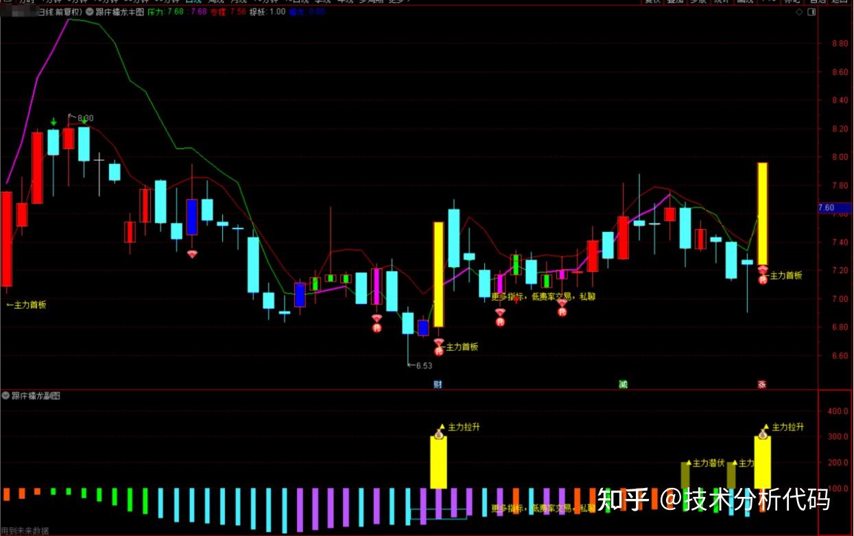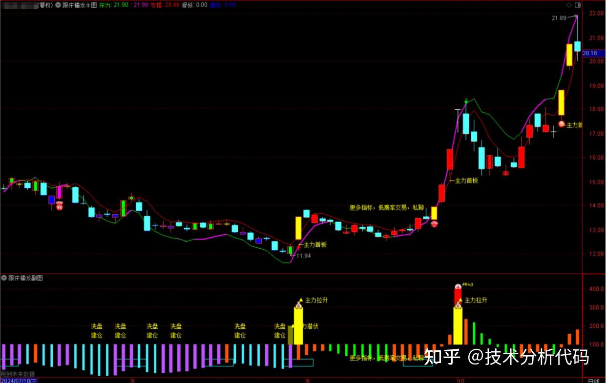 DRAWTEXT(拉升, 340, '▲ 主力拉升'), COLORYELLOW;