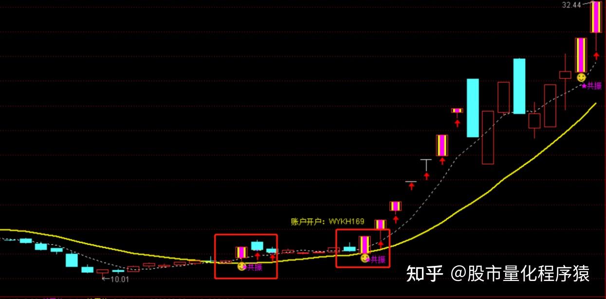 十维共振抓主升浪主图指标公式代码逐行解读: