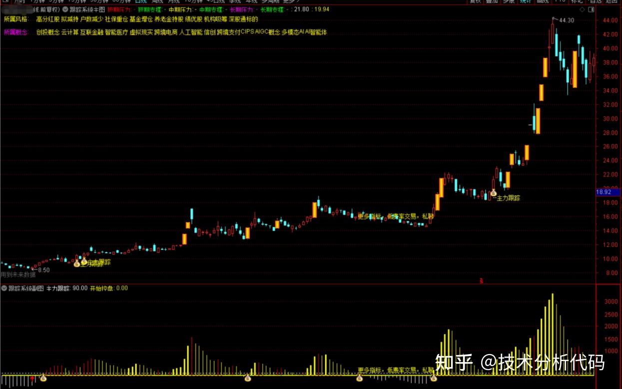 DRAWTEXT(启动,LOW-0.060*LOW,'--主力跟踪'),COLORYELLOW,LINETHICK2;