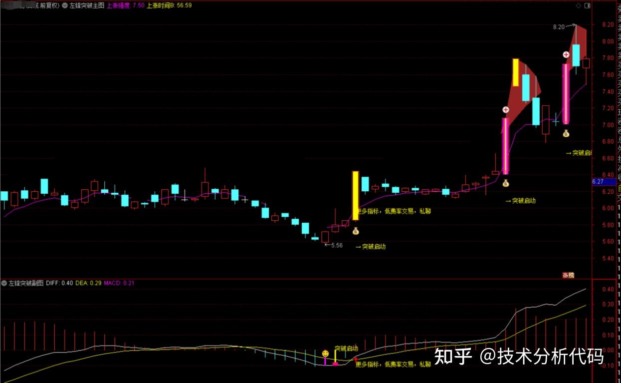 DRAWTEXT(左锋突破,LOW*0.95,'→ 突破启动 '),COLORYELLOW ;