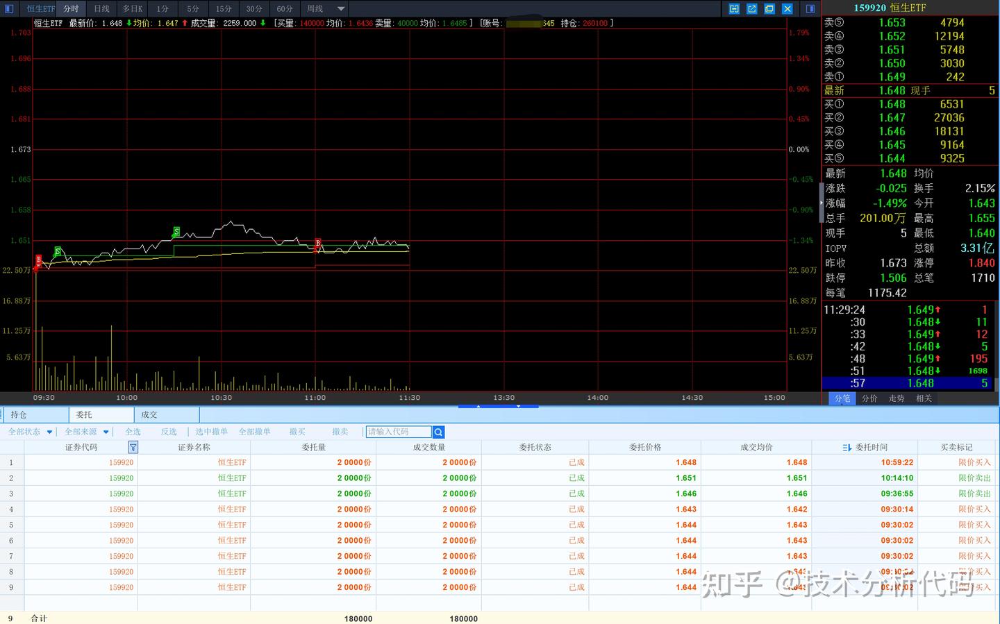 恒生ETF自动化交易委托明细:
