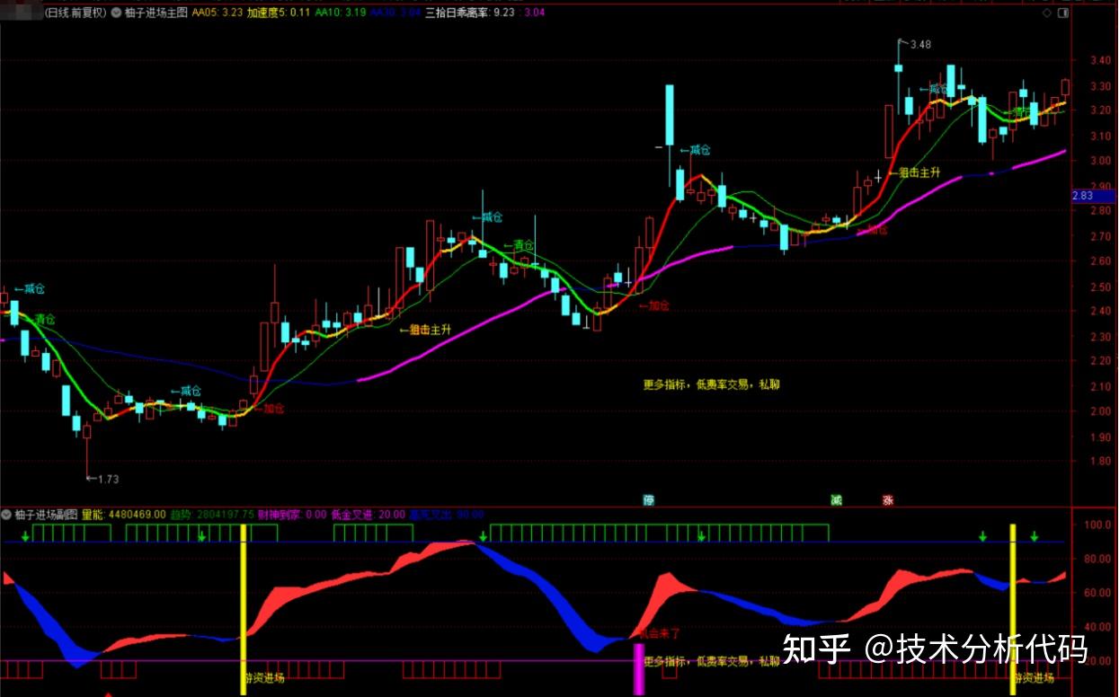 量能:=IF(CAPITAL< 1,MA(VOL,74),MA(SUM(J1-J2,22),3));
