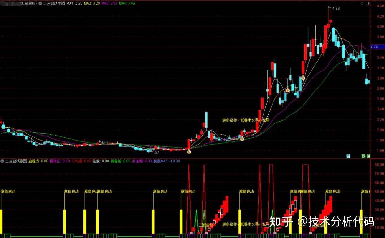 MA1:MA(CLOSE,5);MA2:MA(CLOSE,10);MA3:MA(CLOSE,20);MA4:MA(CLOSE,30);章鱼线:=EMA(C,2);